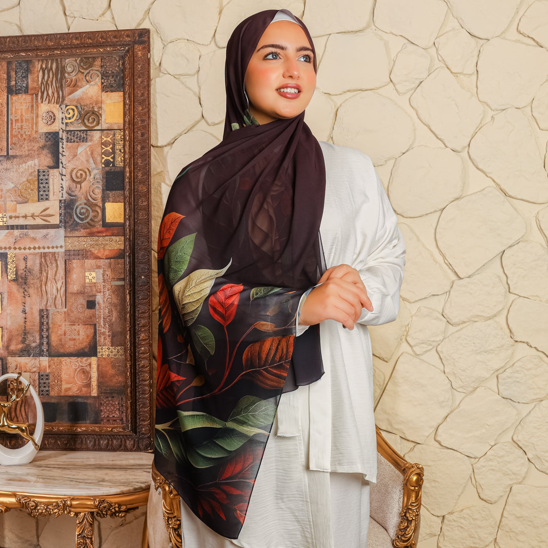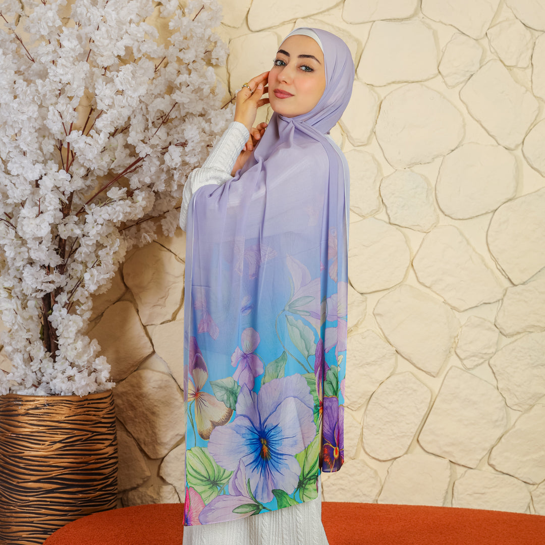 شيلة كريب شيفون خفيف تصميم و طباعة ديجيتال من تصميماتنا الخاصة ٢٠٠سم × ٧٠ سم