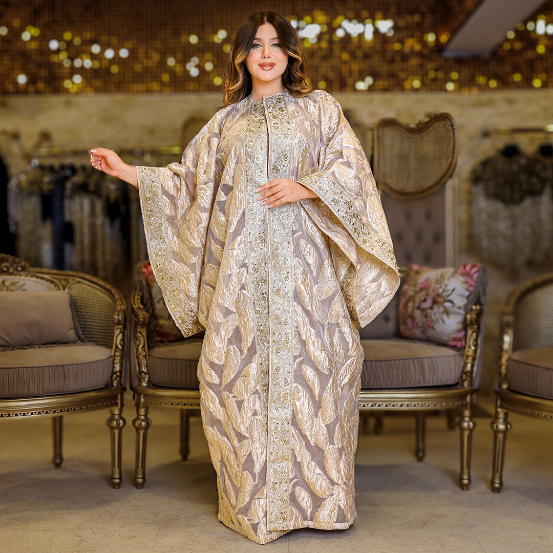 قفطان بحريني من قماش البروكار المطرز و شريط هندي تطريز - فري سايز يناسب ٧٠ك...