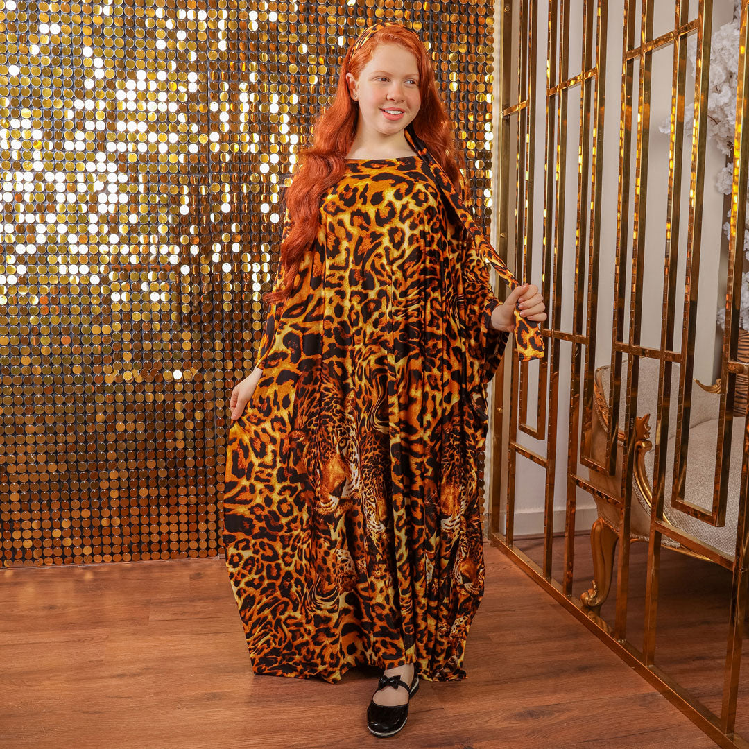 دريس حرير ستان أرماني بأكمام طباعة ديجيتال من تصميماتنا الخاصة فري سايز يناسب ٧٠ك إلى...