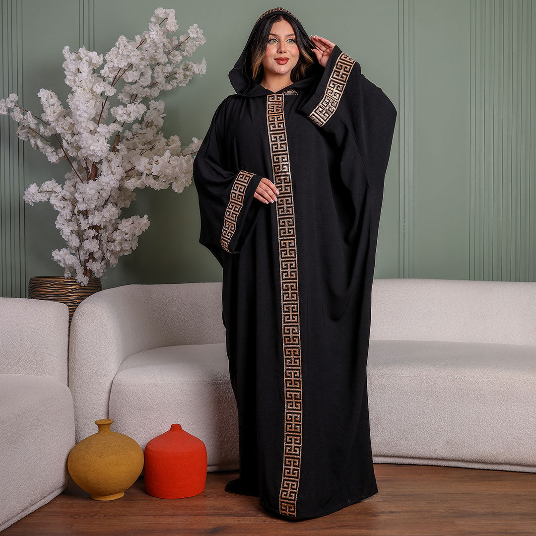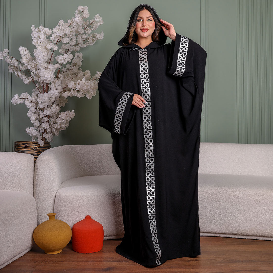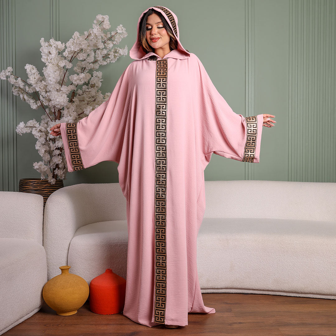 إسدال ستايل مغربي كريب ليكرا و شريط تطريز برقبية و كابيشو فري سايز يناسب ٧٠ك...