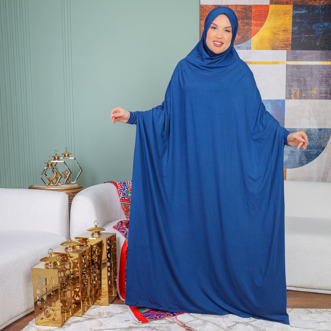 ثوب صلاة (إسدال) جيرسيه ليكرا مع غطاء الرأس فري سايز يناسب ٧٠ك إلى ١٠٠ك