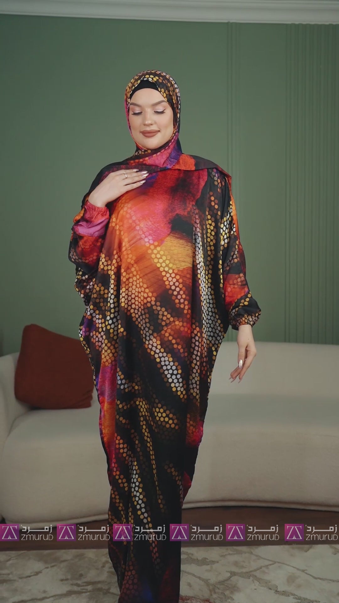 Practical Silky Satin prayer dress (Isdal) (digital print our own designs) Free Size fits 70kg to 90kg With a connected veil