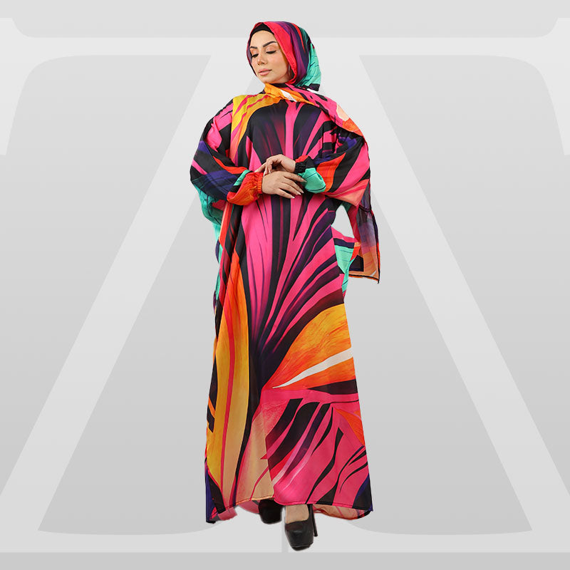 Practical Silky Satin prayer dress (Isdal) (digital print our own designs) Free Size fits 70kg to 90kg With a connected veil