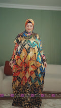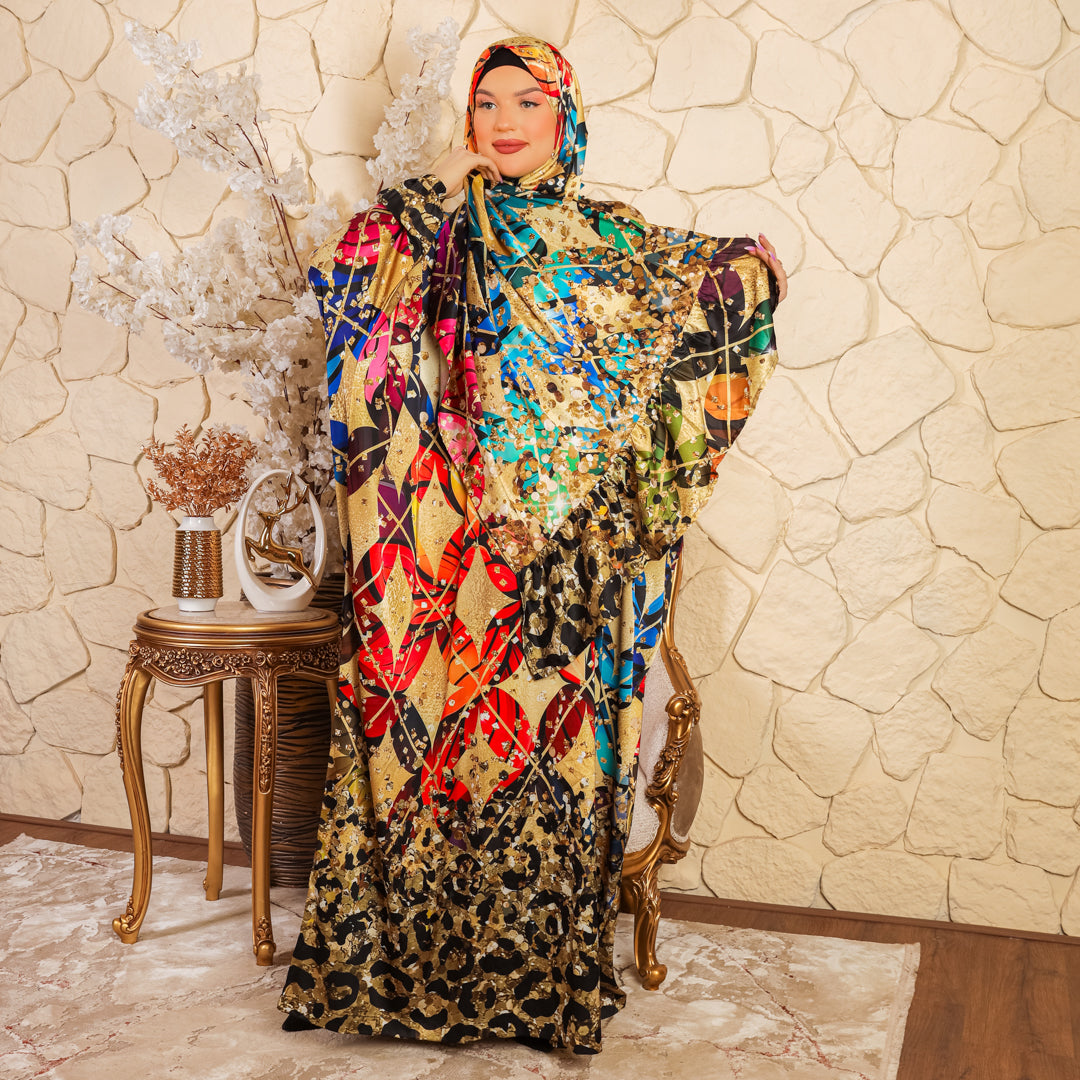 Practical Silky Satin prayer dress (Isdal) (digital print our own designs) Free Size fits 70kg to 130kg With a connected veil