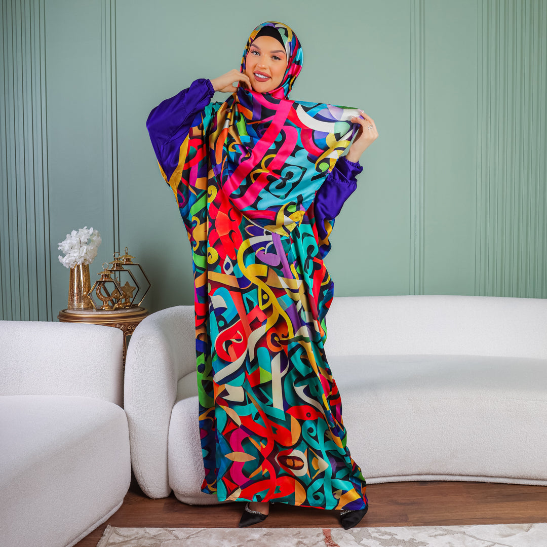 Practical Silky Satin prayer dress (Isdal) (digital print our own designs) Free Size fits 70kg to 90kg With a connected veil