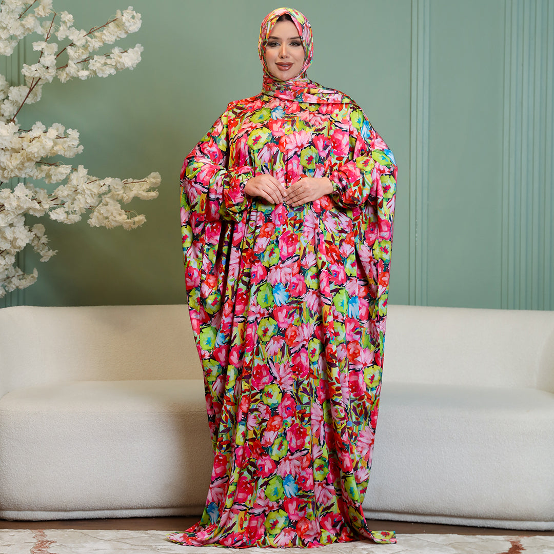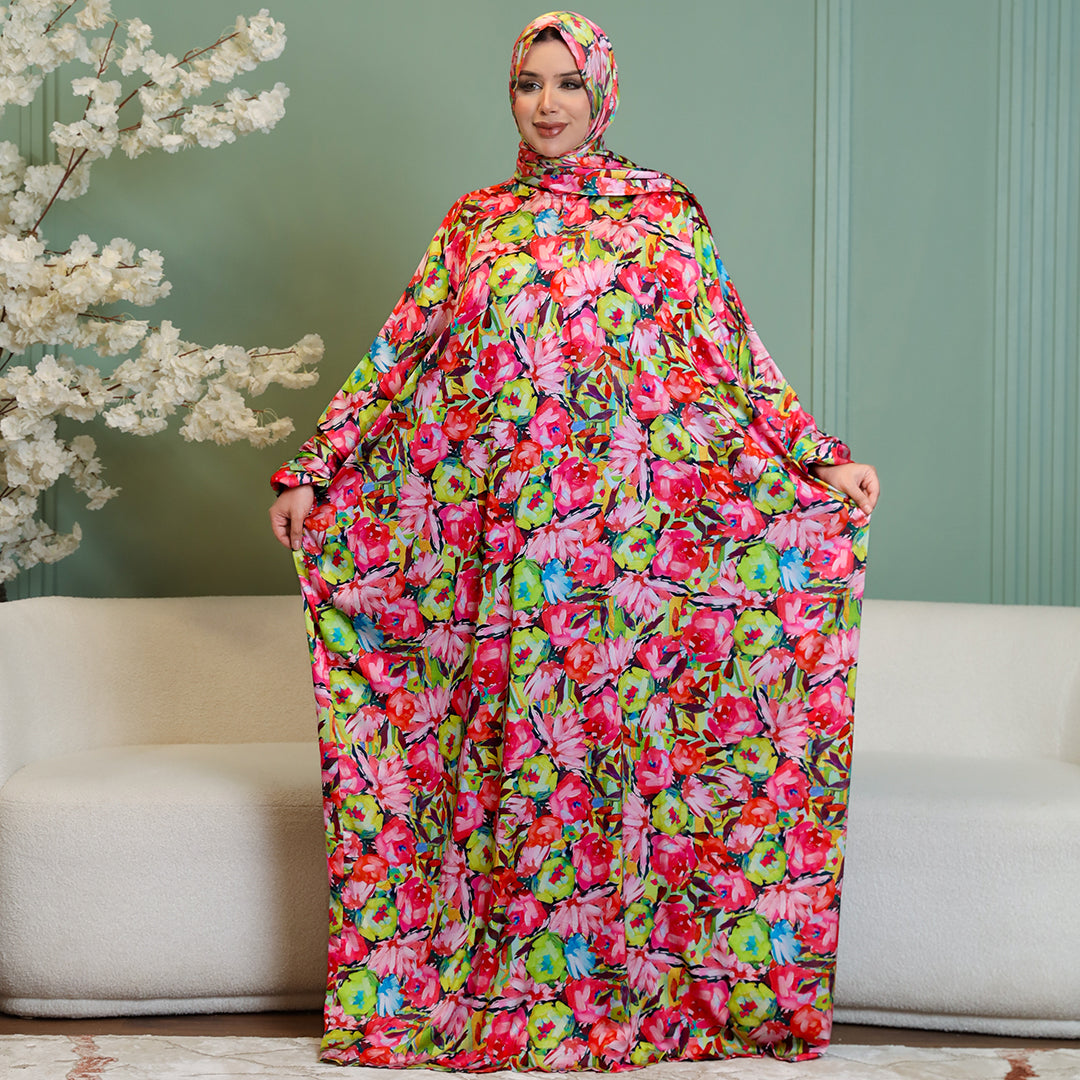 Practical Printed - silky satin prayer dress with headscarf