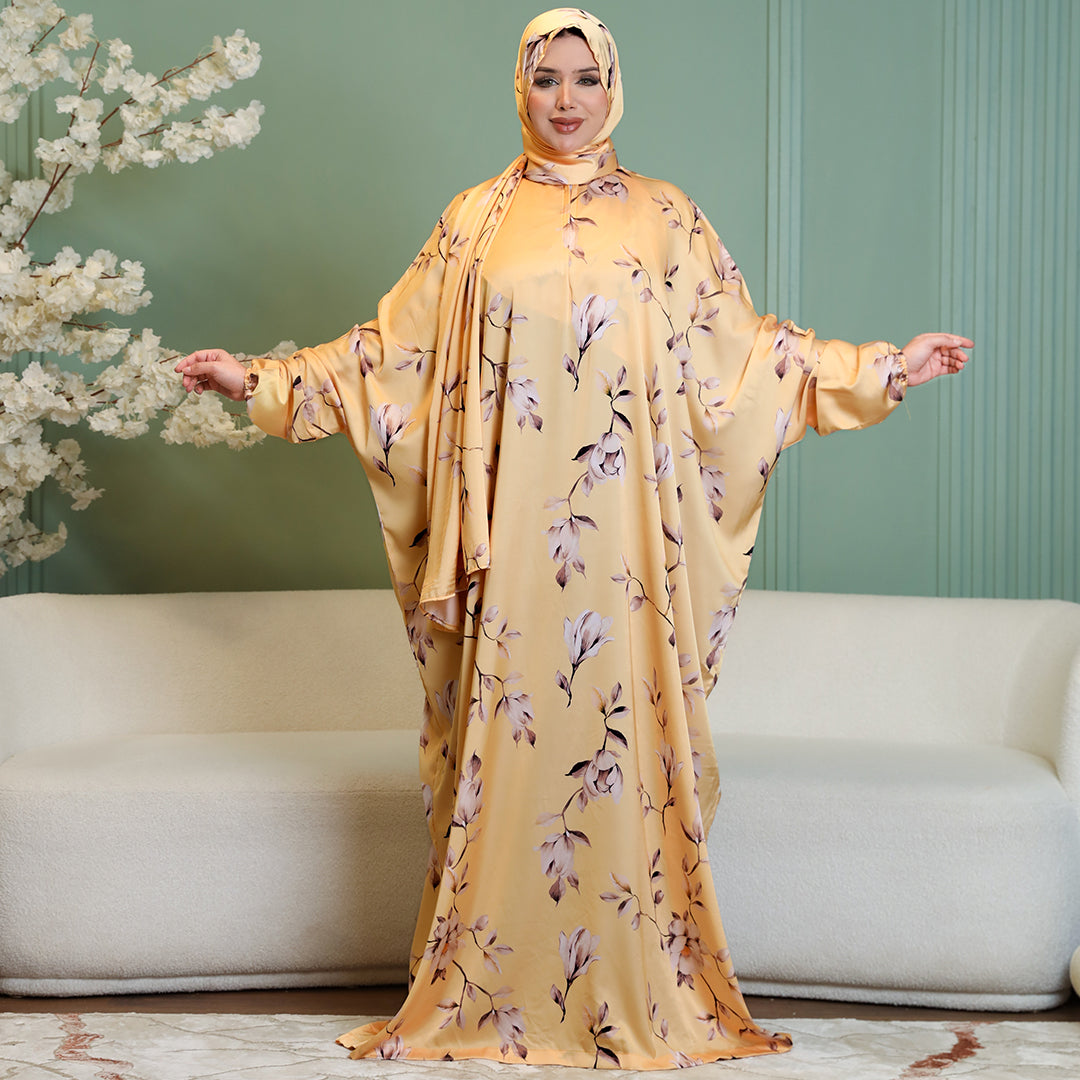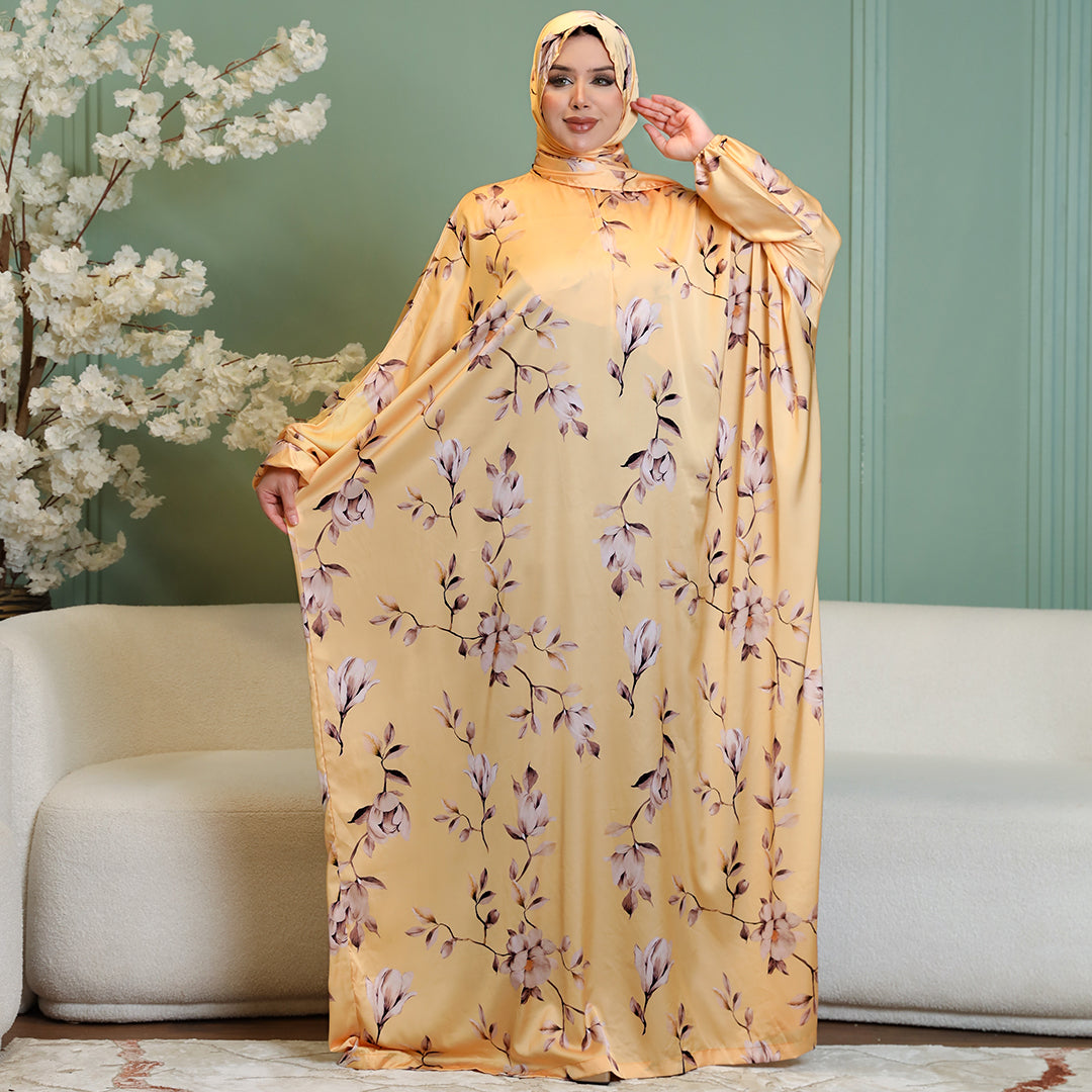 Practical Printed - silky satin prayer dress with headscarf