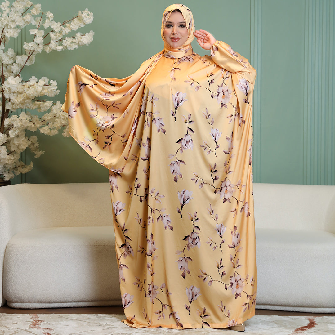 Practical Silky Satin prayer dress (Isdal) (digital print our own designs) Free Size fits 70kg to 130kg With a connected veil