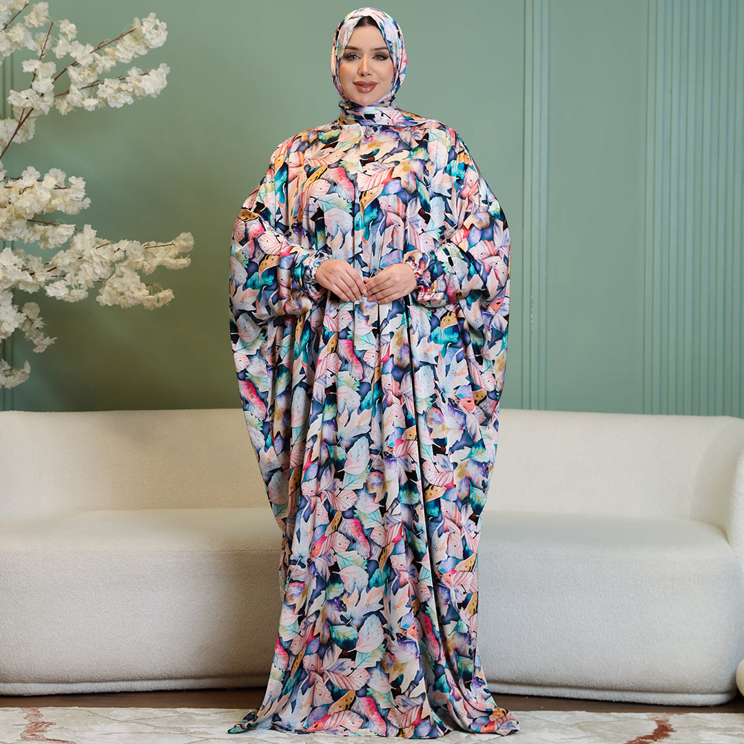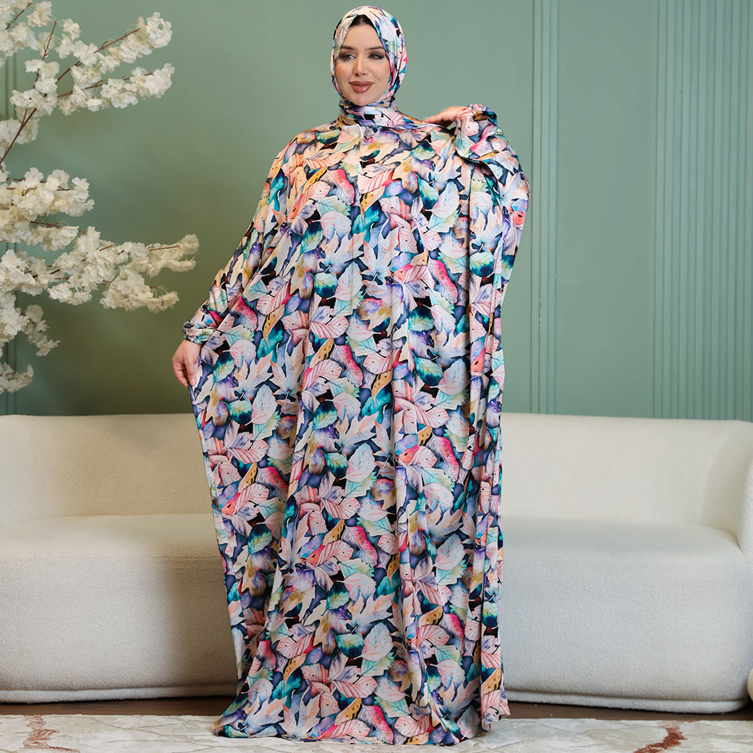 Practical Printed - silky satin prayer dress with headscarf