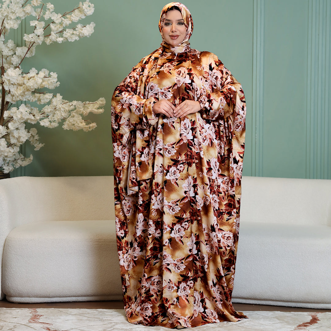 Practical Printed - silky satin prayer dress with headscarf