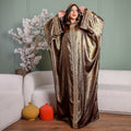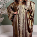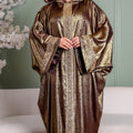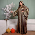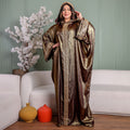 One-piece Shiny Moroccan Isdal with Indian embroidery ribbon and cape Free size, fits 70to100 kg.