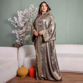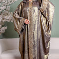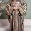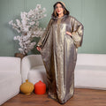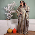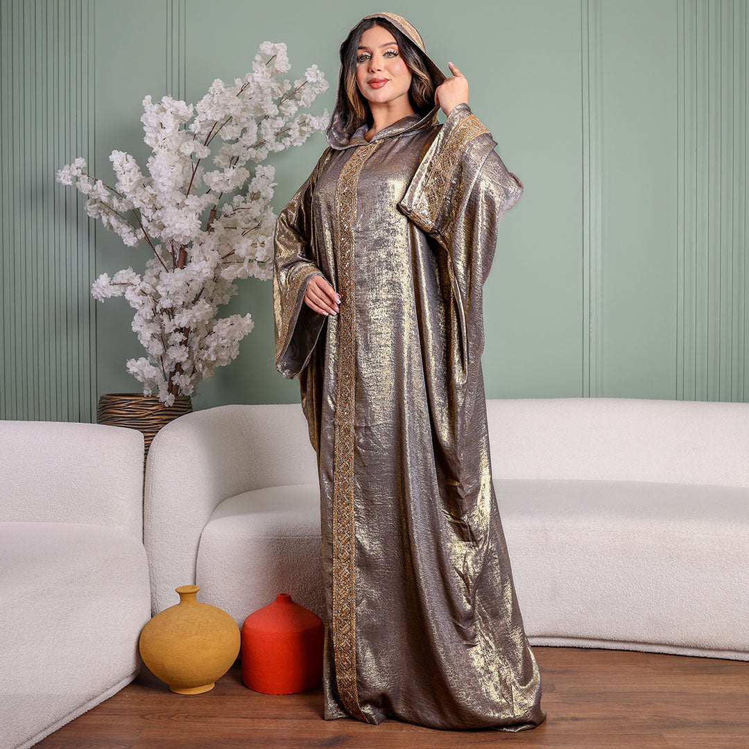One-piece Shiny Moroccan Isdal with Indian embroidery ribbon and cape Free size, fits 70to100 kg.