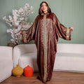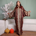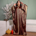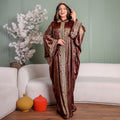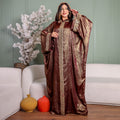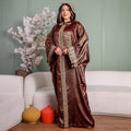One-piece Shiny Moroccan Isdal with Indian embroidery ribbon and cape Free size, fits 70to100 kg.