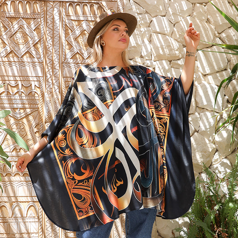 Silky Satin Poncho (Digital print) our own designs Free Size fits 70 to 130 kilos