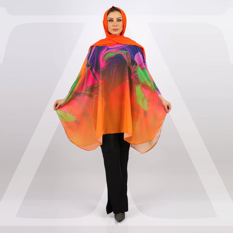 chiffon poncho without lining, digital print of our own designs Free Title fits 70kg to...