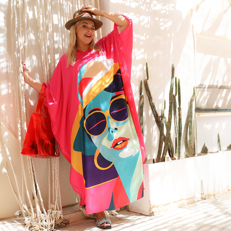 Silky Satin dress ( Armani) dress with digital printing from our own designs, free size,...