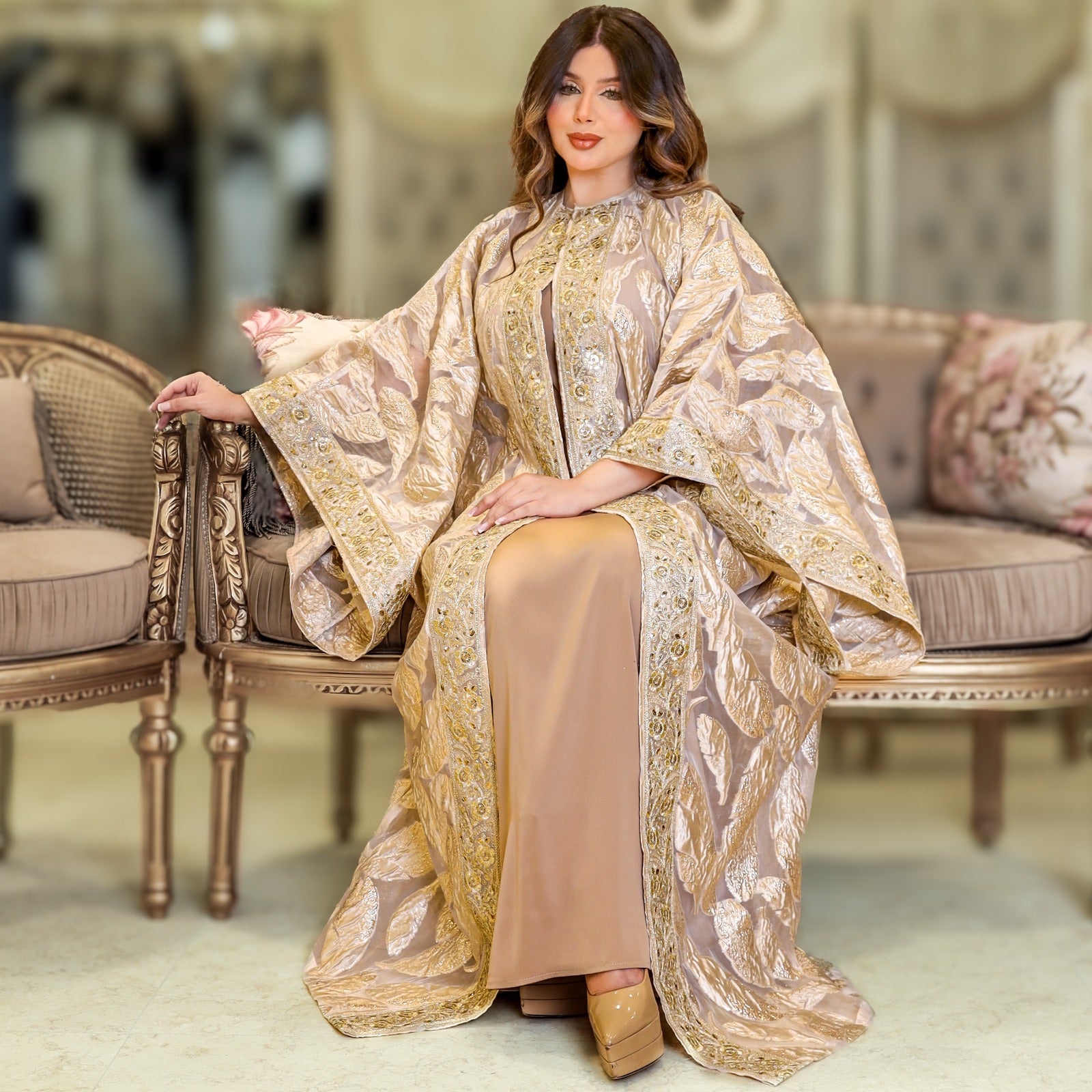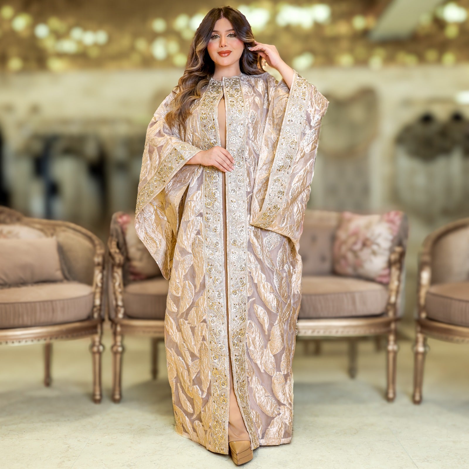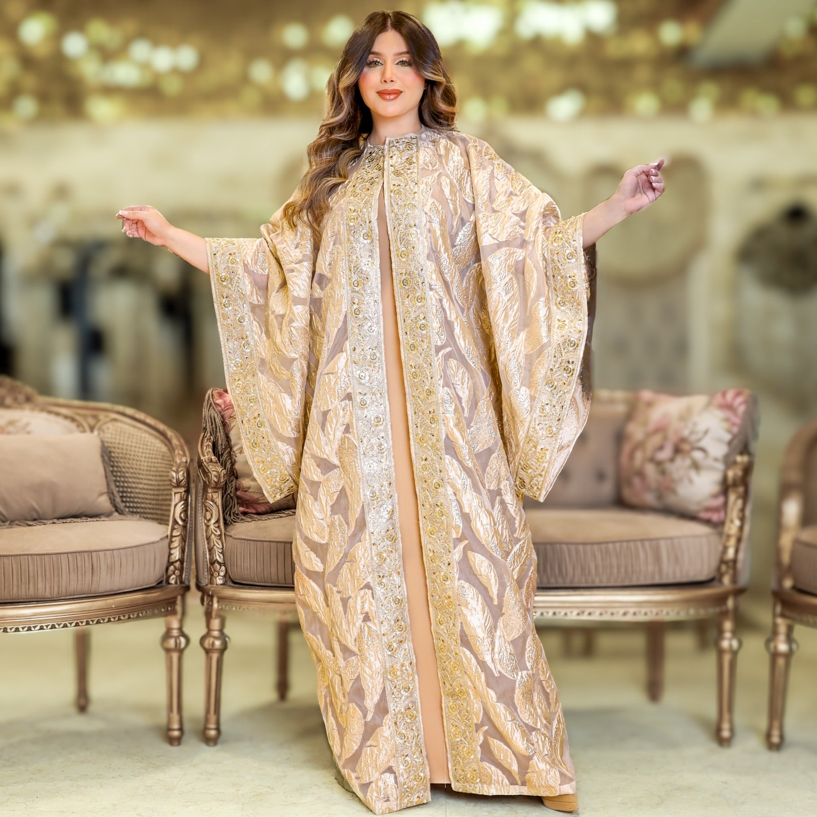 Bahraini kaftan made of embroidered brocade fabric, Indian embroidery Free size, fits 70-130 kg.
