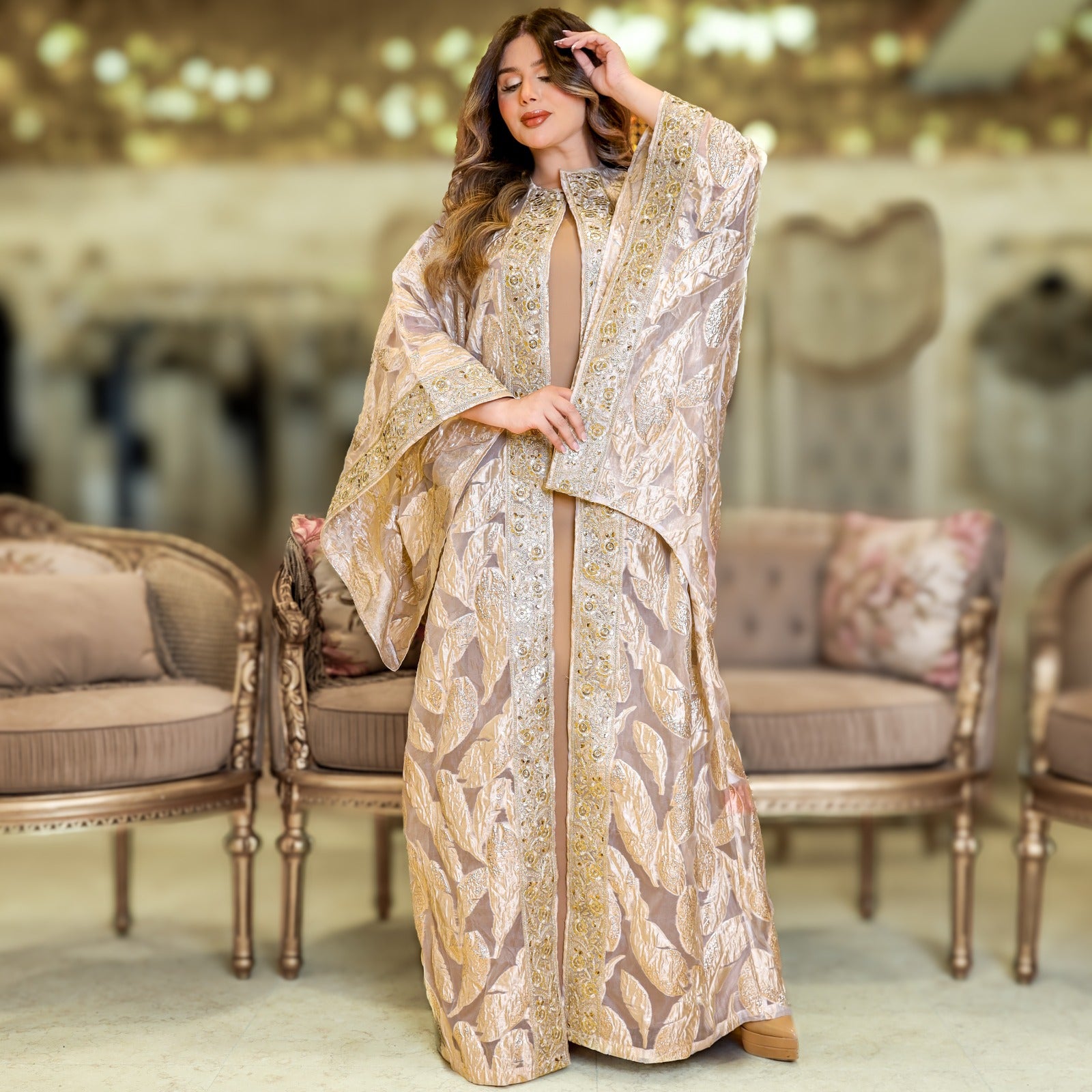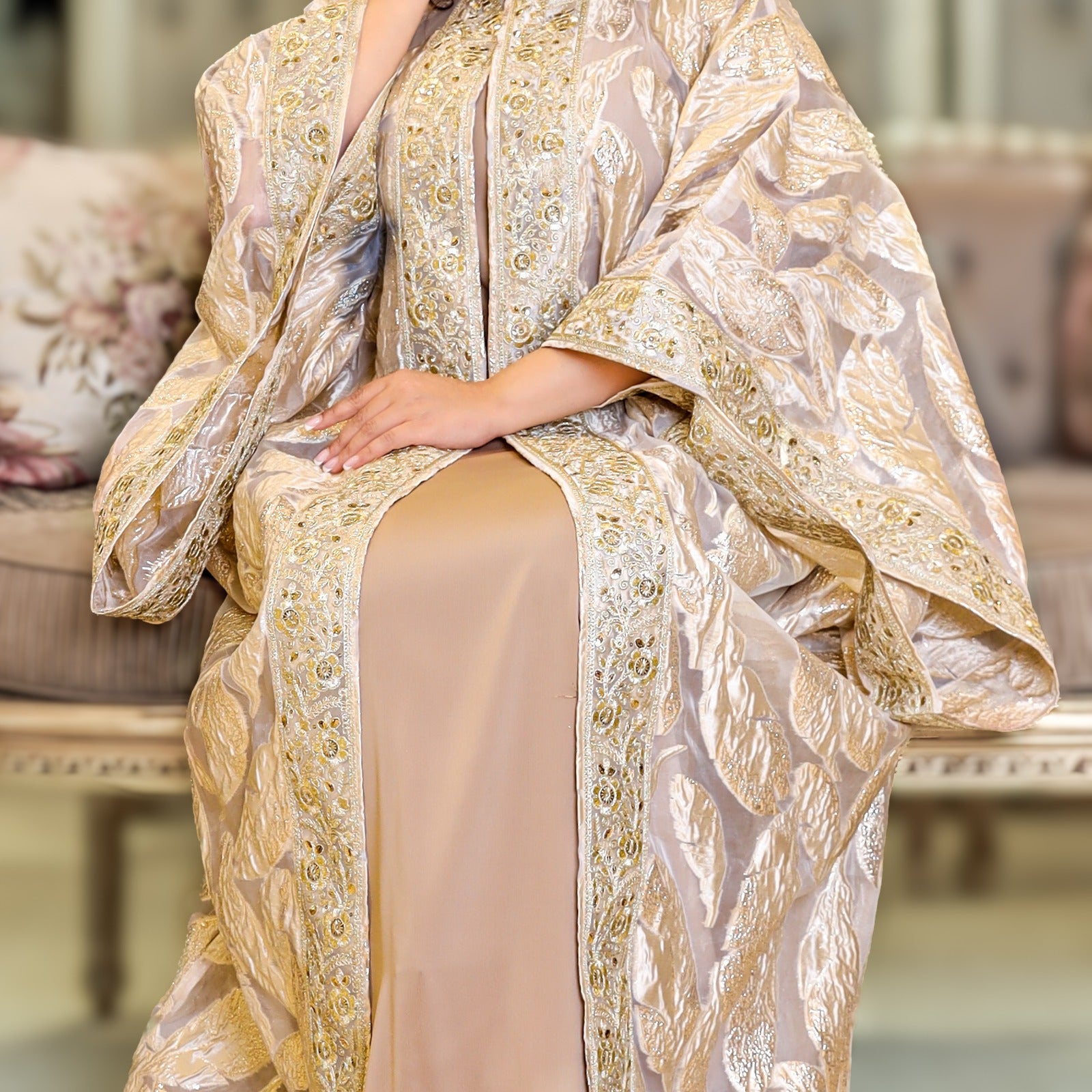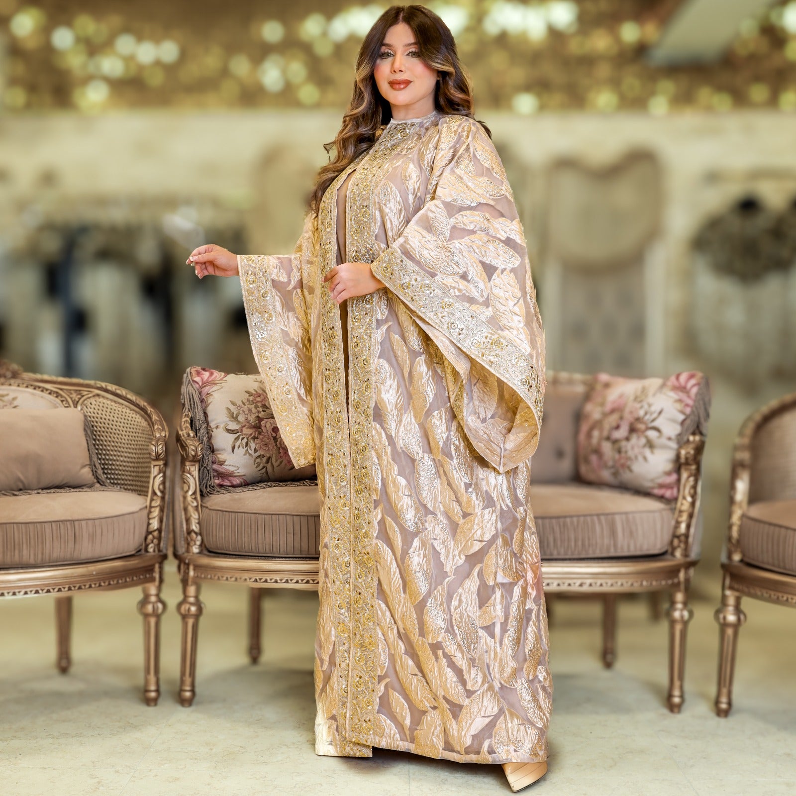 Bahraini kaftan made of embroidered brocade fabric, Indian embroidery Free size, fits 70-130 kg.