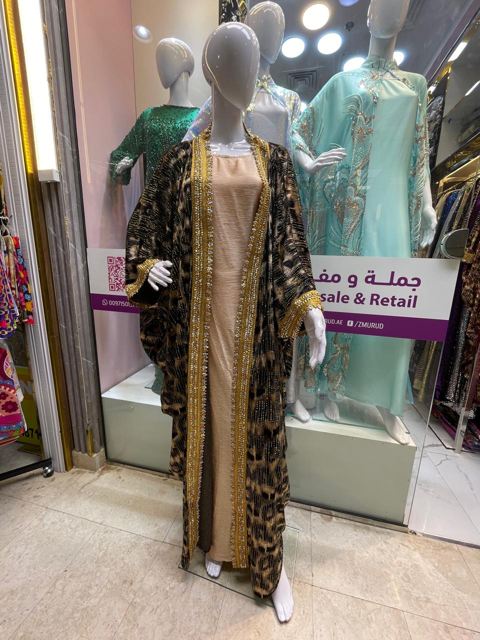 قفطان من خامة الشايني ليكرا جليتر مطرز بشريط هندي زيركون و كريستالات فري سايز يناسب ٧٠ك إلى ١٠٠ك