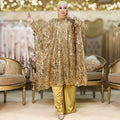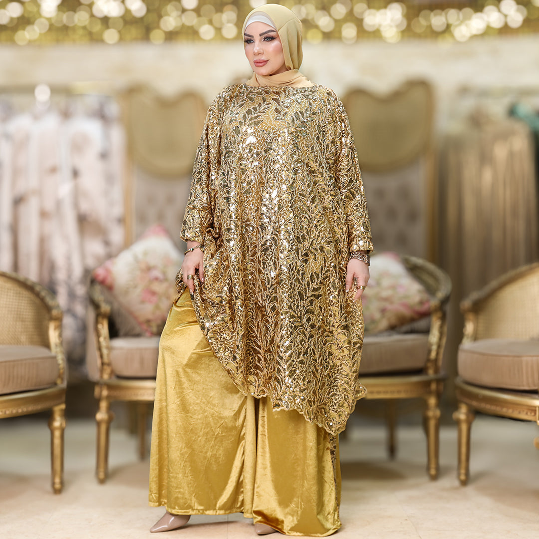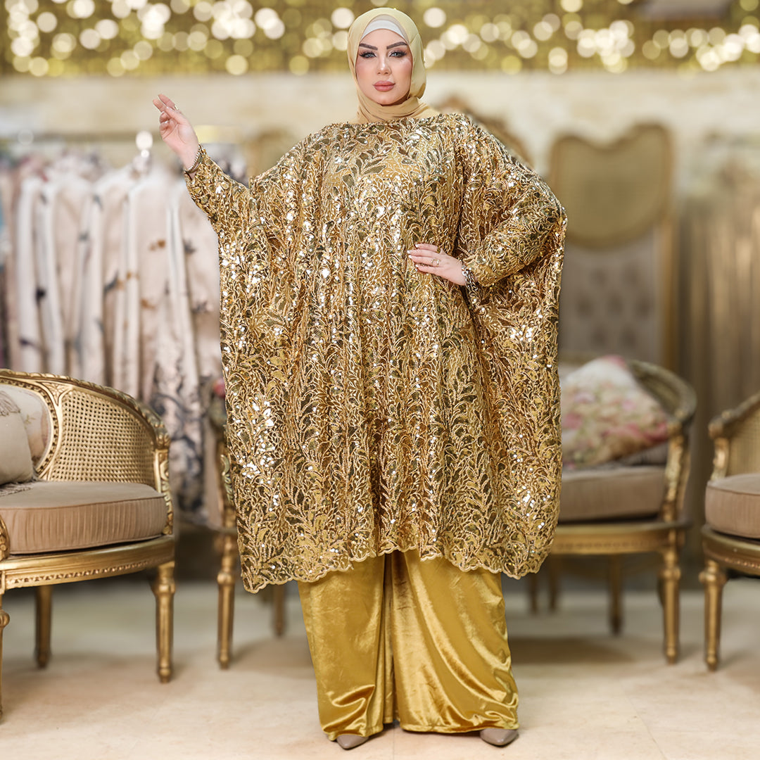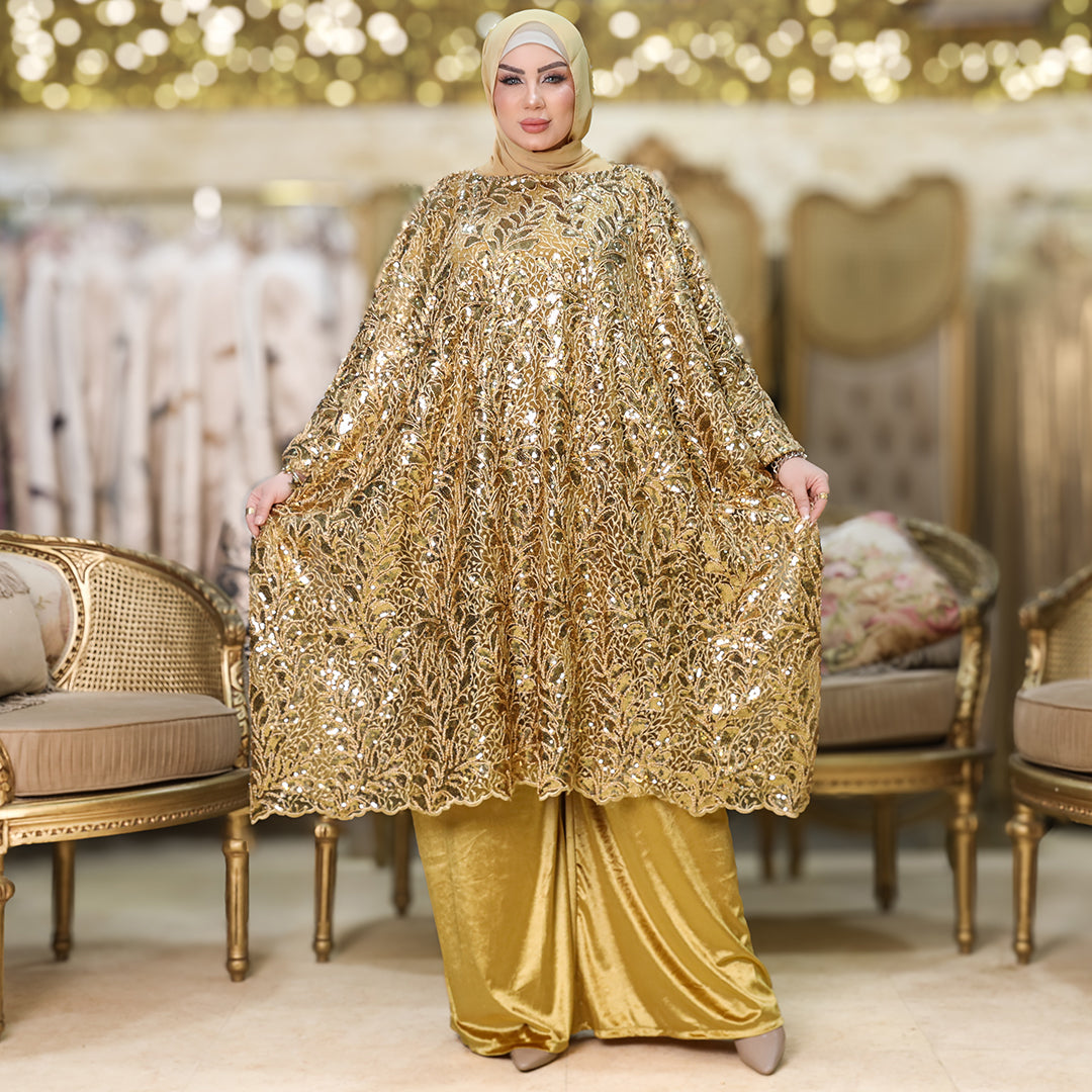 two-piece soirée suit is made from organza fabric,with a French velvet lining