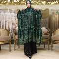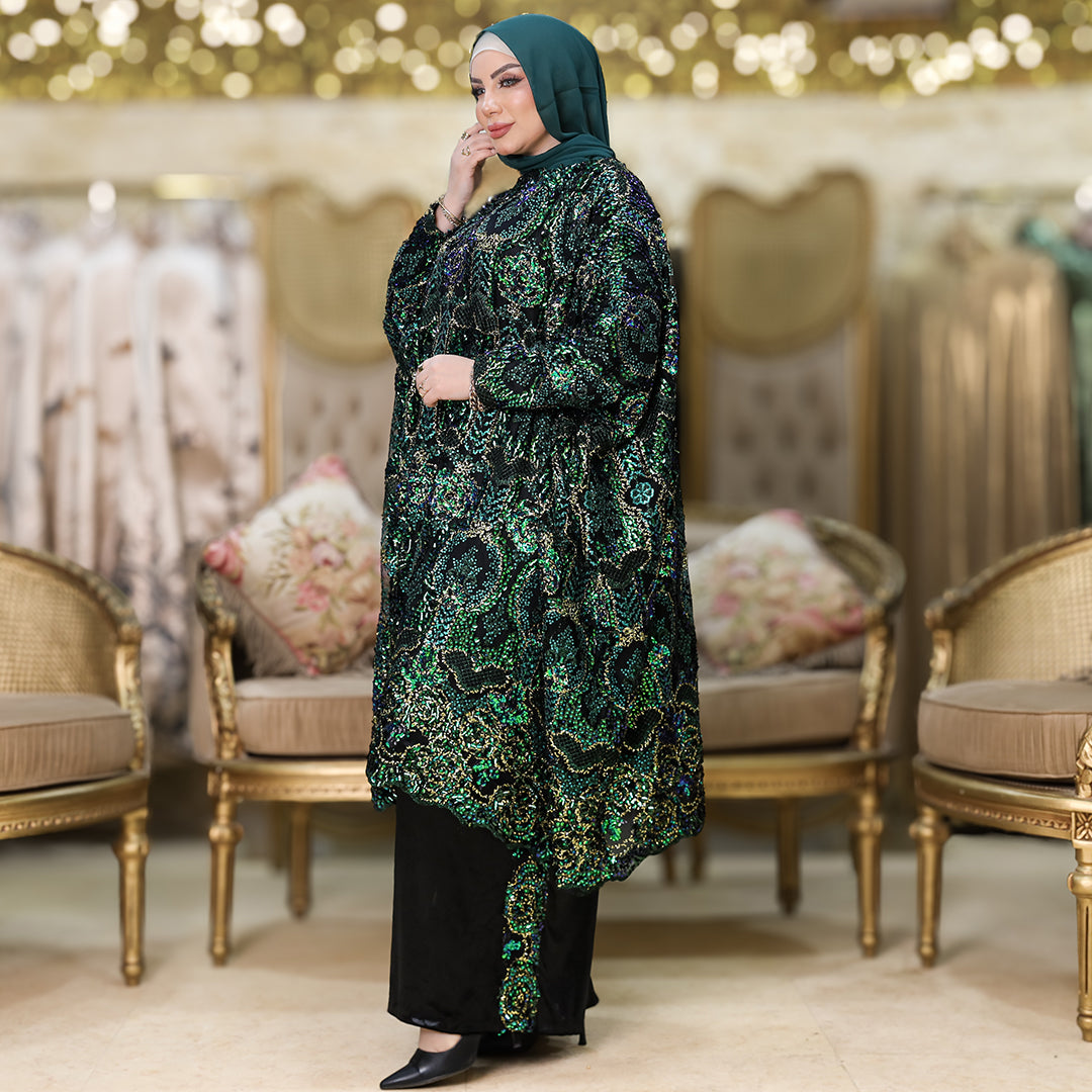 two-piece soirée suit is made from organza fabric,with a French velvet lining