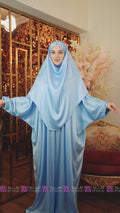 Practical Silky Satin  prayer dress(isdal) , colorful, with a long veil, free size, fits 70kg to 130kg Height from shoulder 155 cm-French