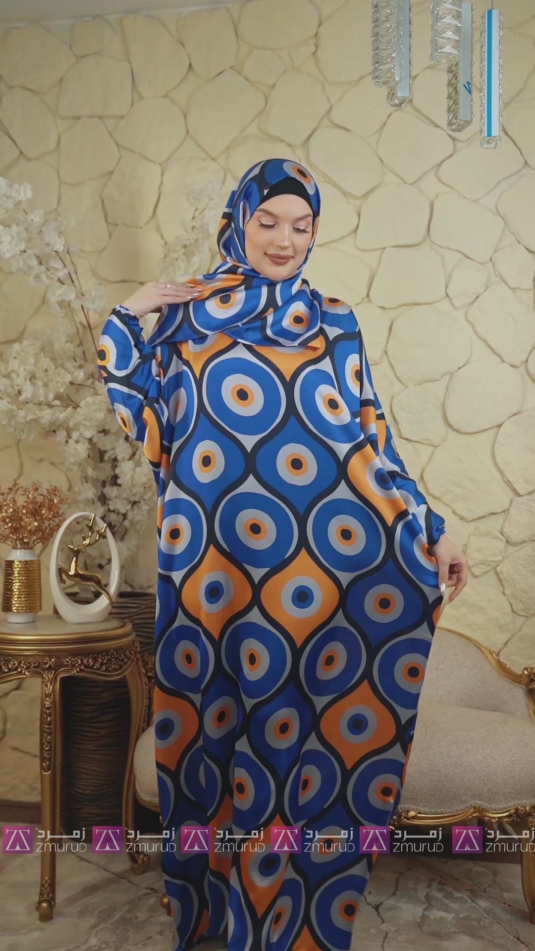 Practical Printed - silky satin prayer dress with headscarf