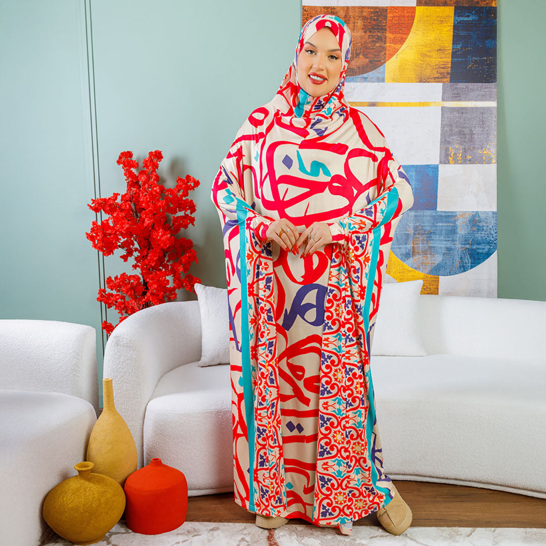 Practical Kuwaiti Jersey prayer dress with headscarf- Printed
