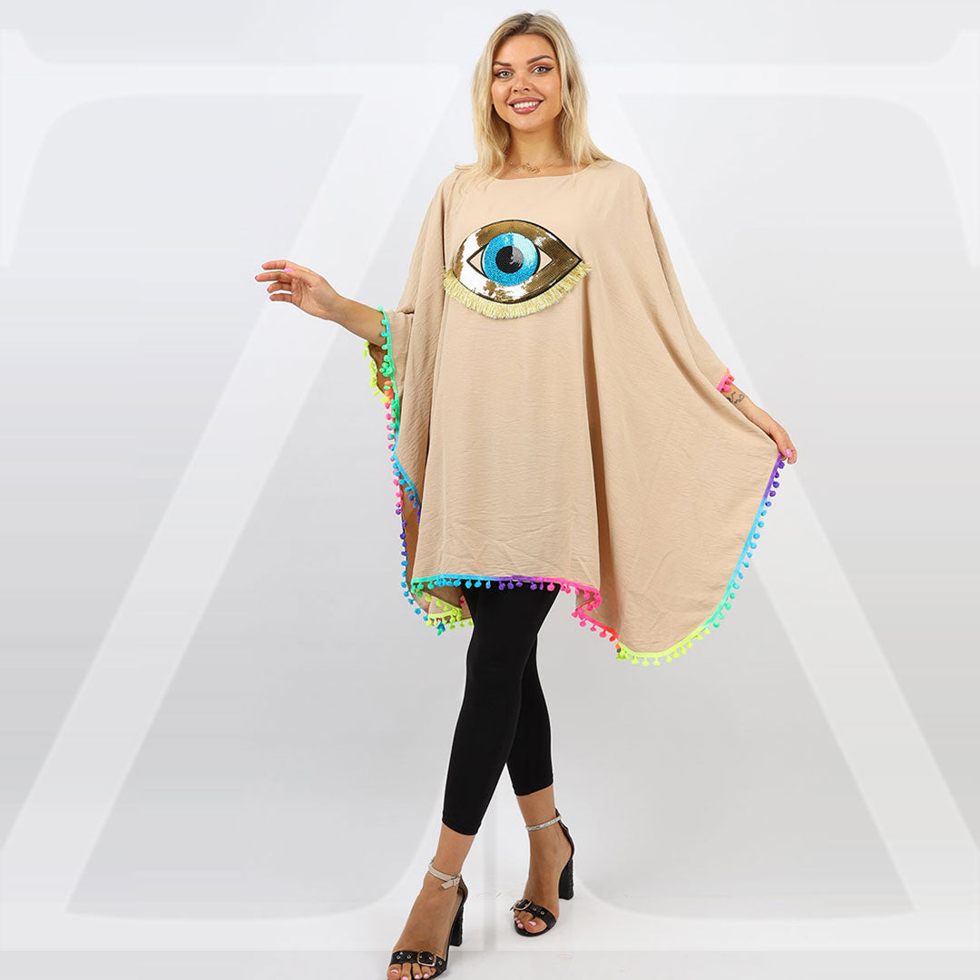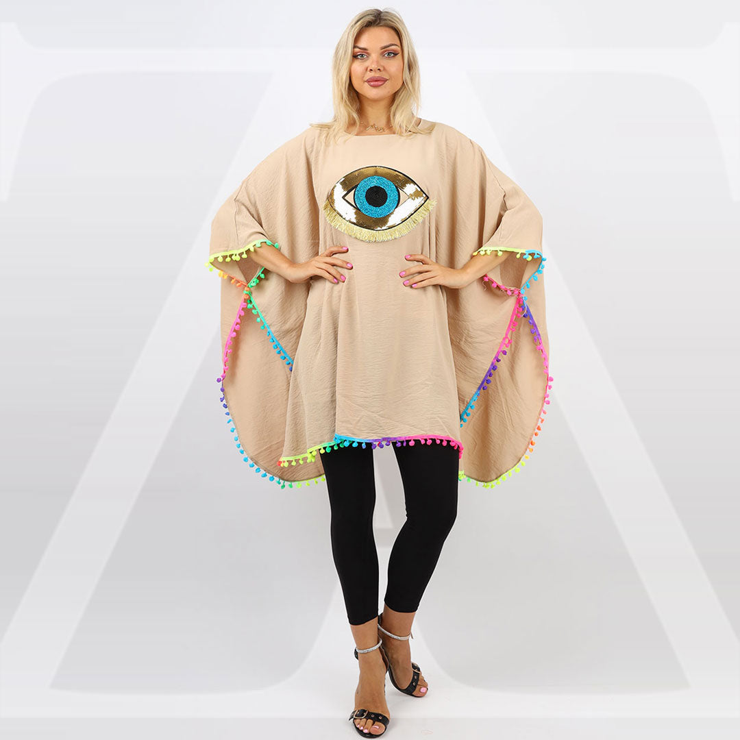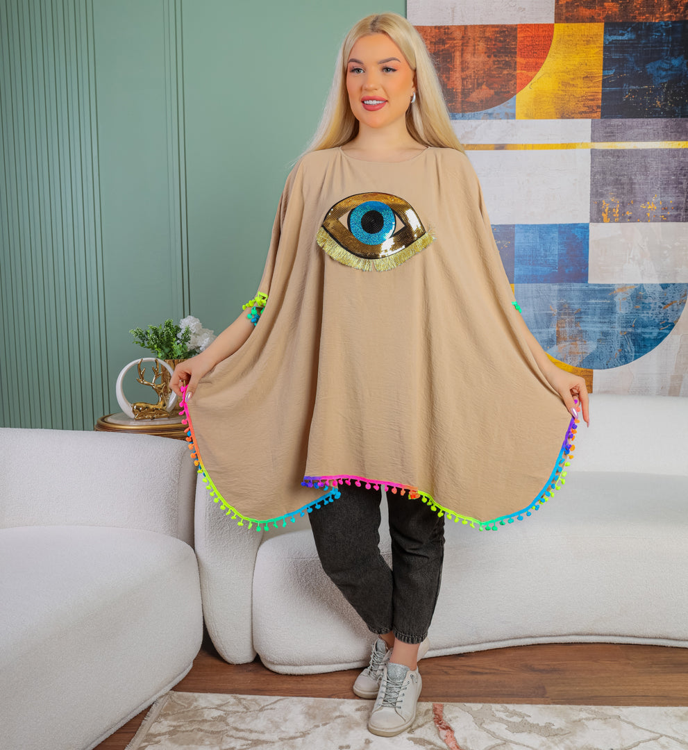 Crepe Poncho Embroidered , free size, fits 70kg to 130kg