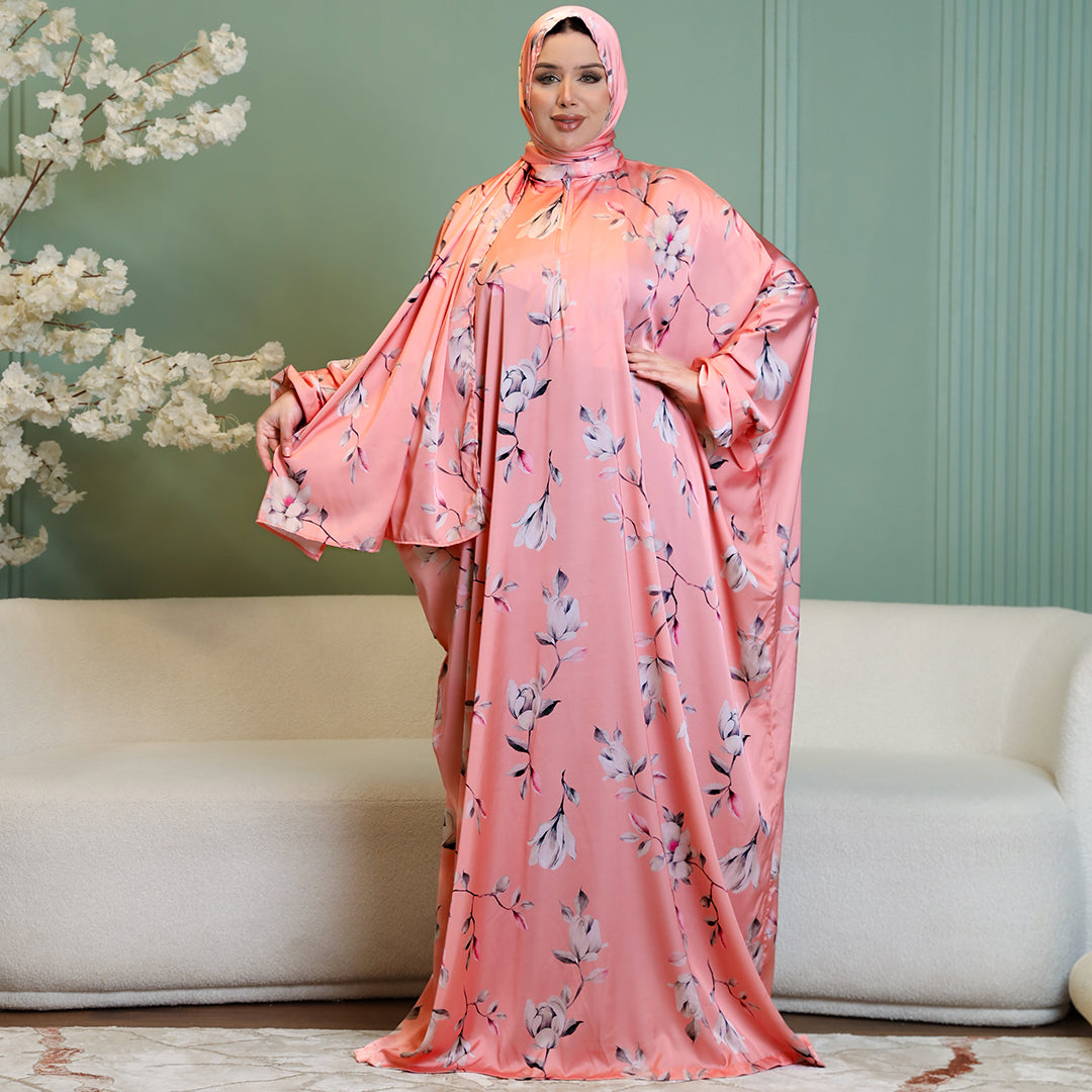 Practical Printed - silky satin prayer dress with headscarf