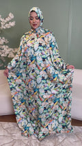 Practical Silky Satin prayer dress (Isdal) (digital print our own designs) Free Size fits 70kg to 130kg With a connected veil