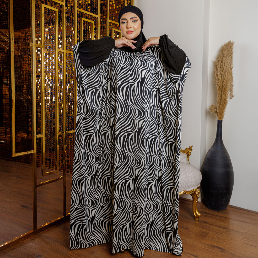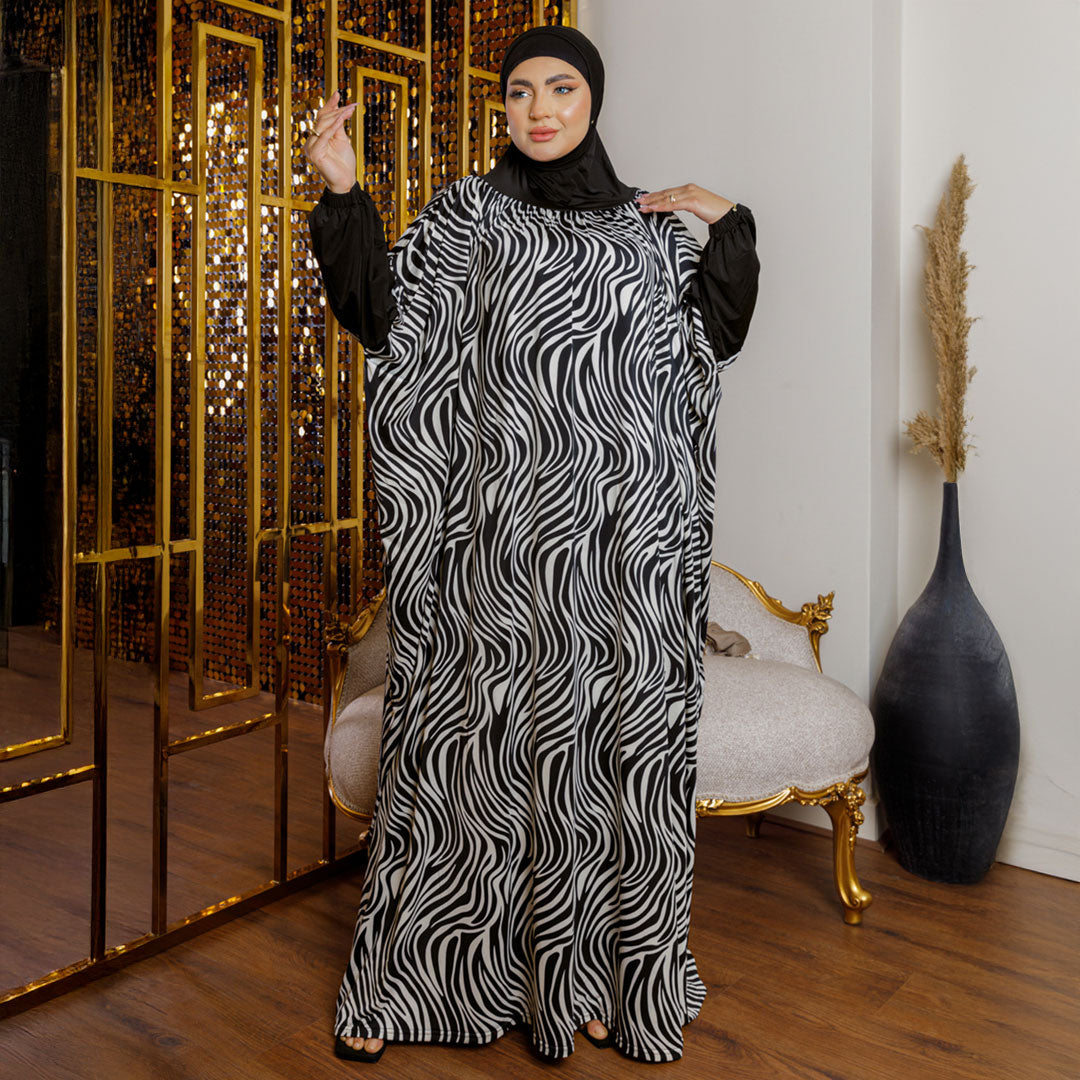 ثوب صلاة (إسدال) جيرسيه ليكرا مع غطاء الرأس فري سايز يناسب ٧٠ك إلى ١٠٠ك