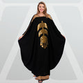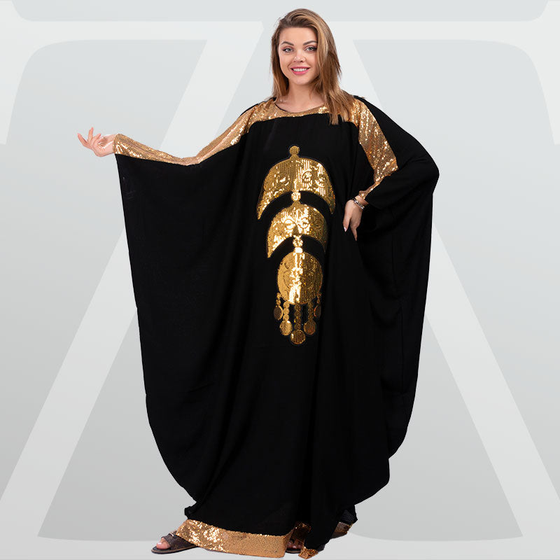 چلابية تطريز ترتر عربي من خامة الكريب الليكرا فري سايز تناسب ٧٠ك إلى ١٣٠ك و الطول من الكتف ١٥٠سم