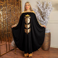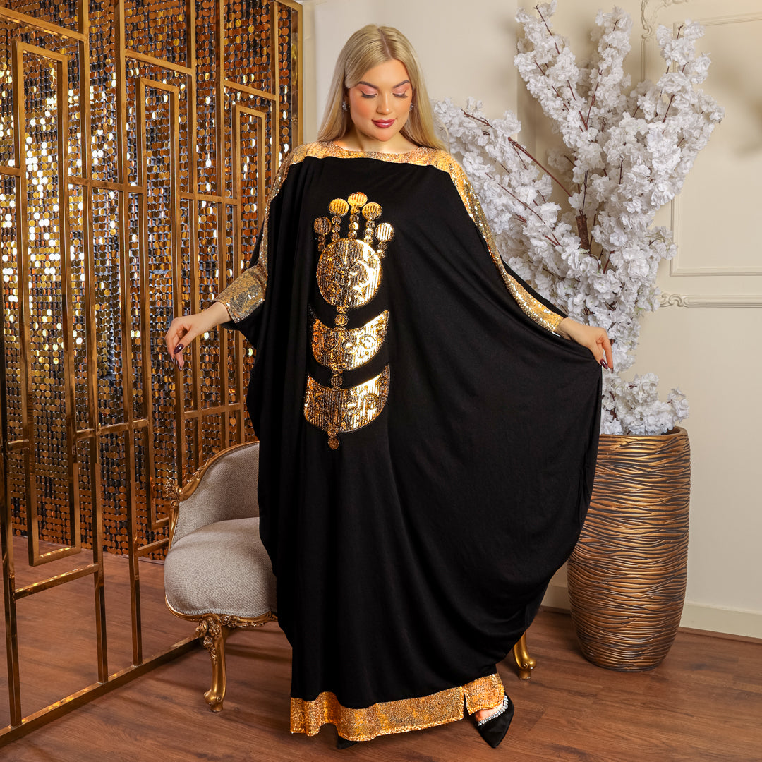 چلابية تطريز ترتر عربي من خامة الكريب الليكرا فري سايز تناسب ٧٠ك إلى ١٣٠ك و الطول من الكتف ١٥٠سم