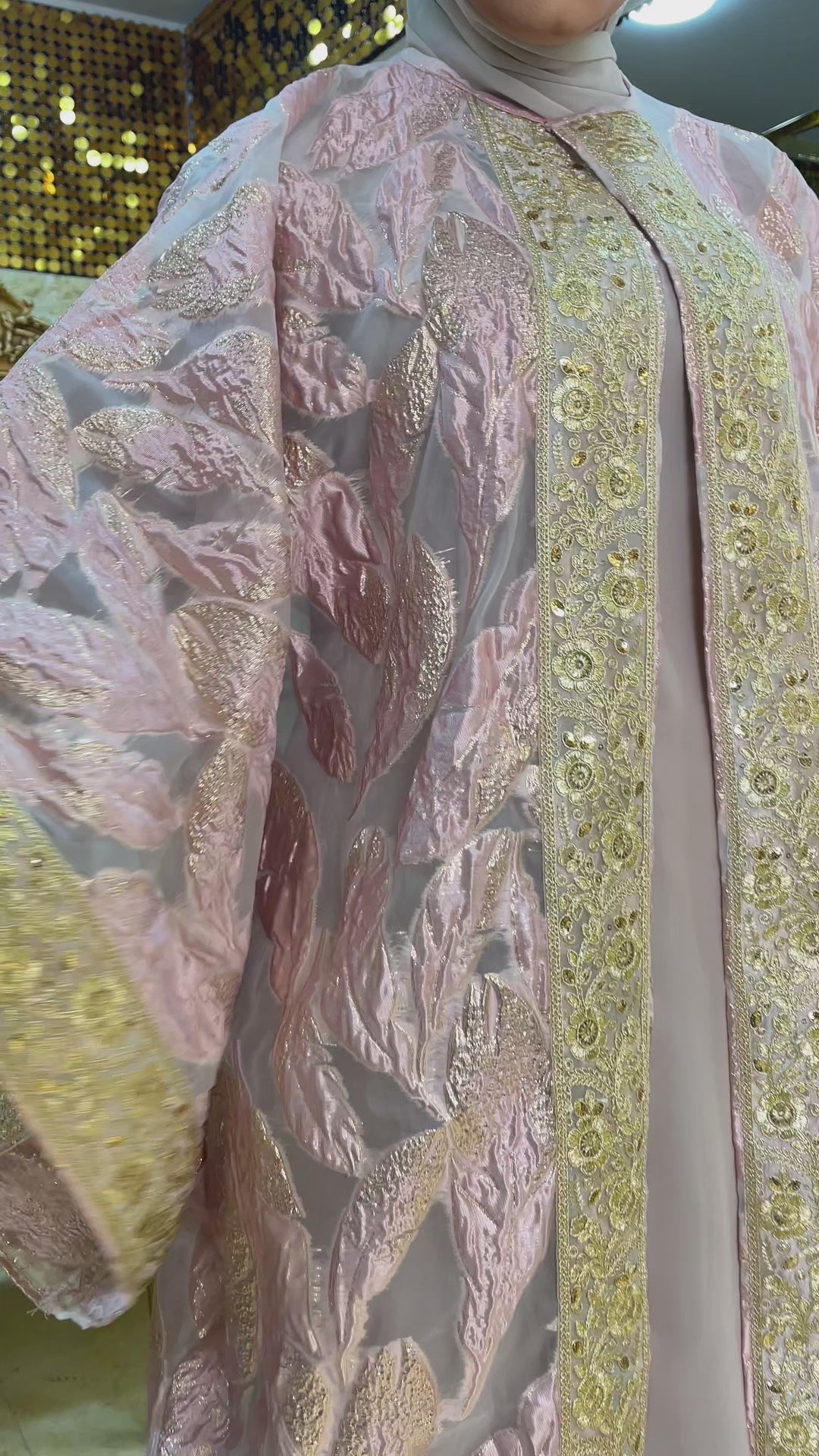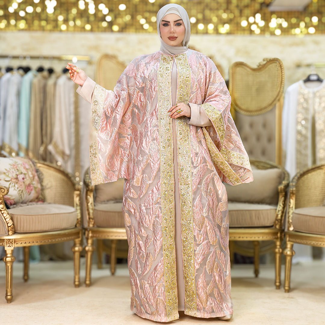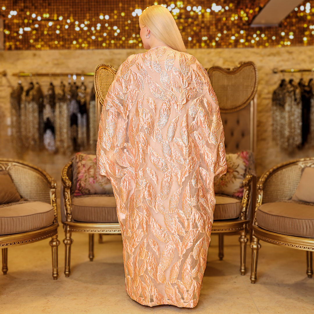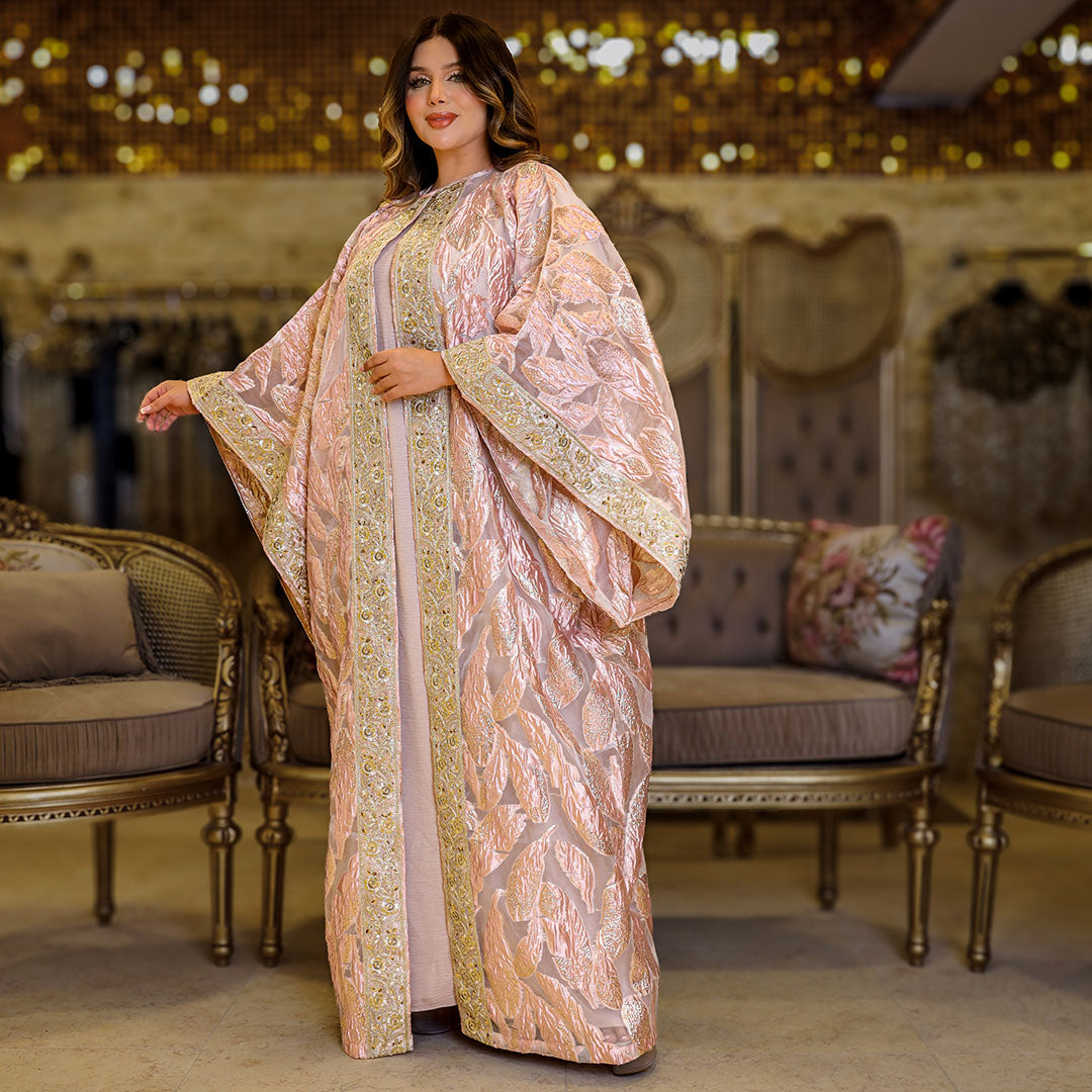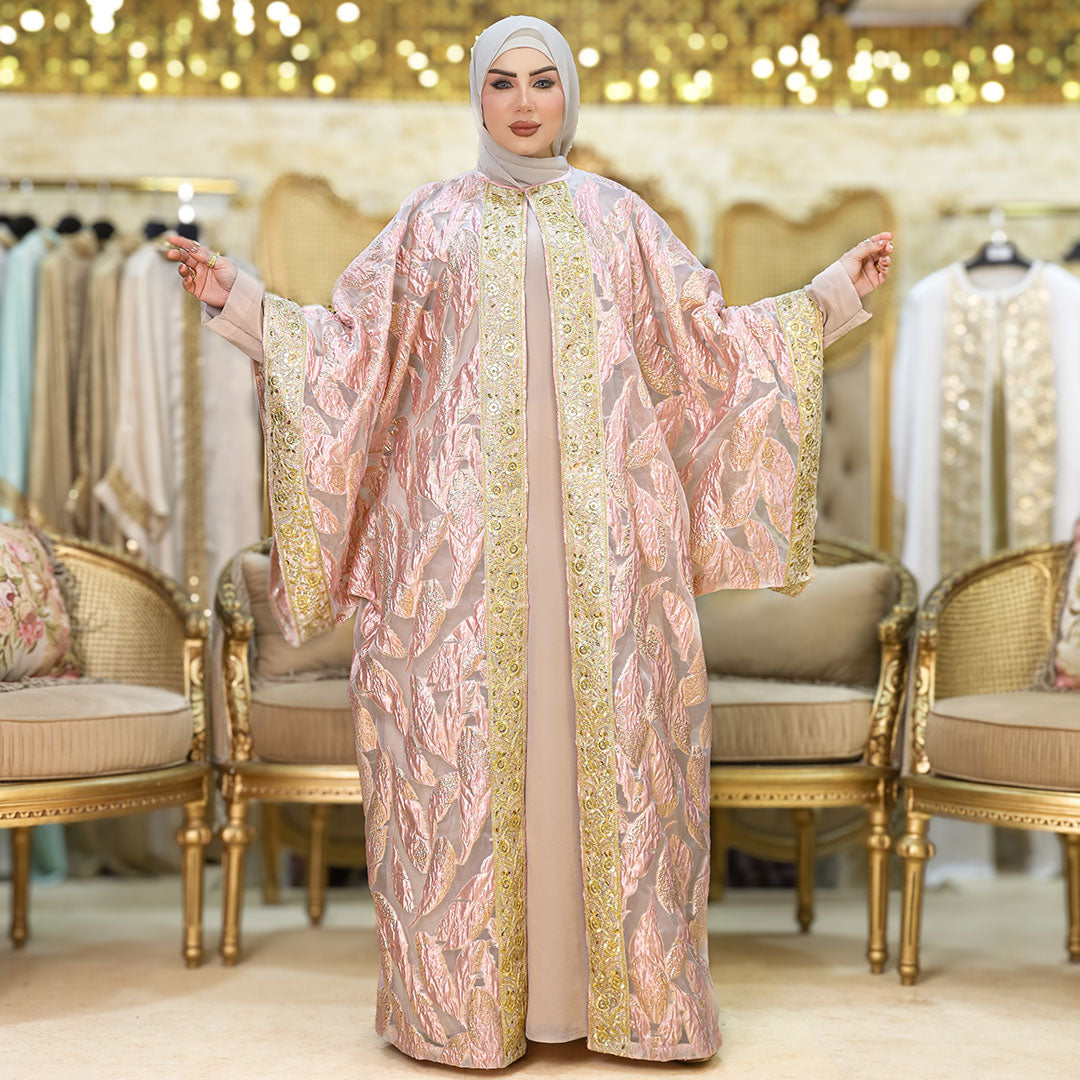 قفطان بحريني من قماش البروكار المطرز و شريط هندي تطريز - فري سايز يناسب ٧٠ك إلى ١٣٠ك