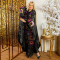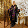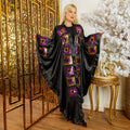 قفطان حرير ستان ناعم مزين بأباليك تطريز ترتر فري سايز يناسب ٧٠ك إلى ١٣٠ك