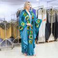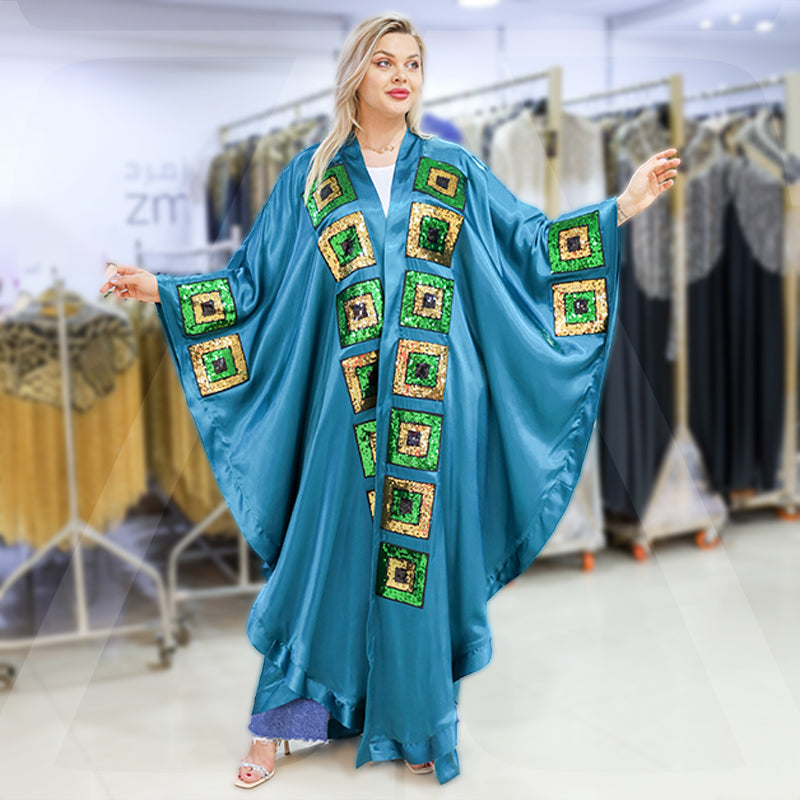 قفطان حرير ستان ناعم مزين بأباليك تطريز ترتر فري سايز يناسب ٧٠ك إلى ١٣٠ك