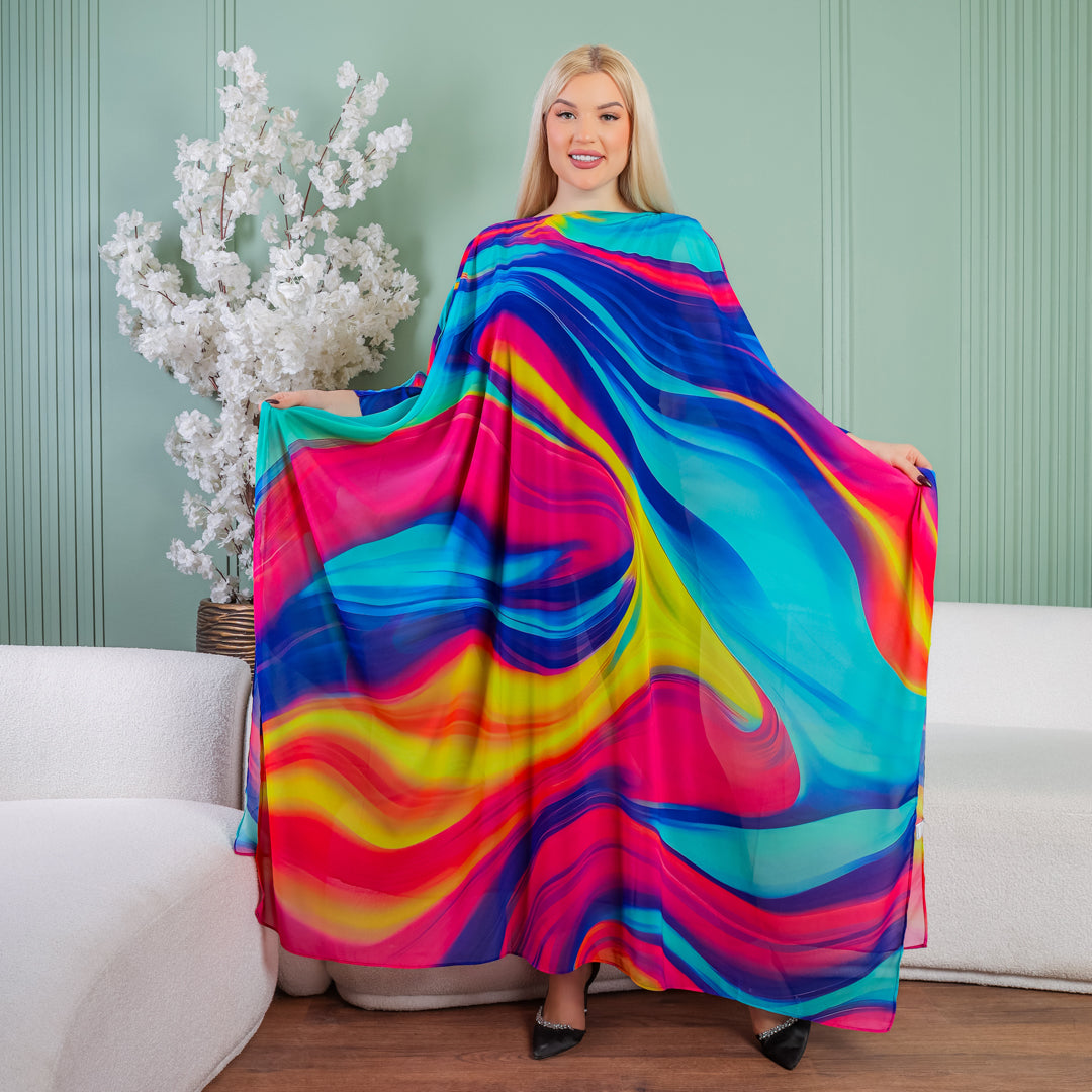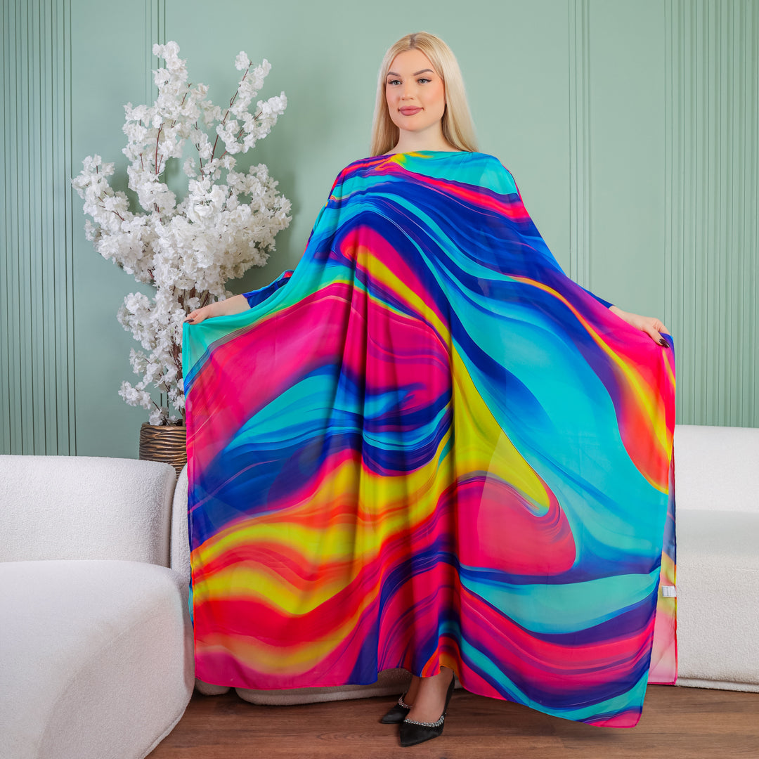 كاجوال كاش فراشة شيفون ناعم و خفيف بدون بطانة طباعة ديجيتال من تصميماتنا الخاصة فري سايز يناسب ٧٠ك إلى ١٣٠ك و الطول من الكتف ١٣٥سم