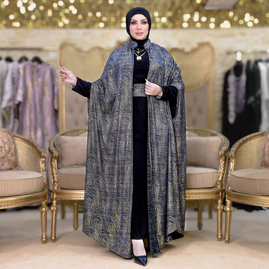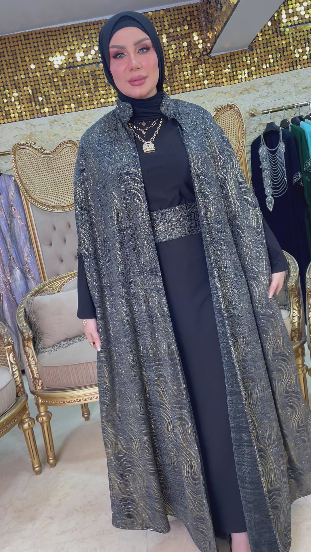 قفطان سواريه من خامة كريستال شايني + حزام لون القفطان، بدون بيزك , فري سايز يناسب ٧٠ك إلى ١٢٠ك