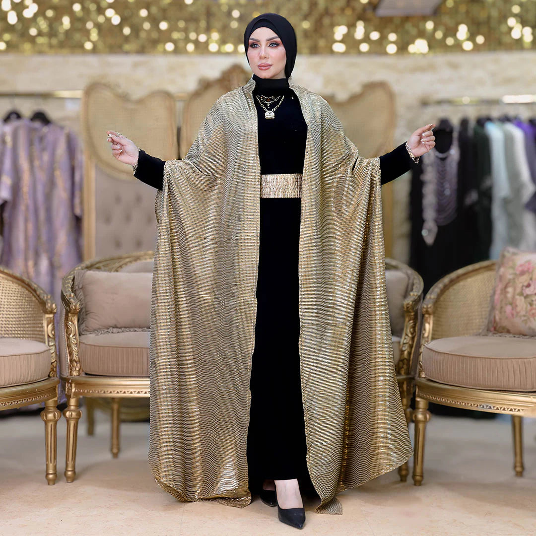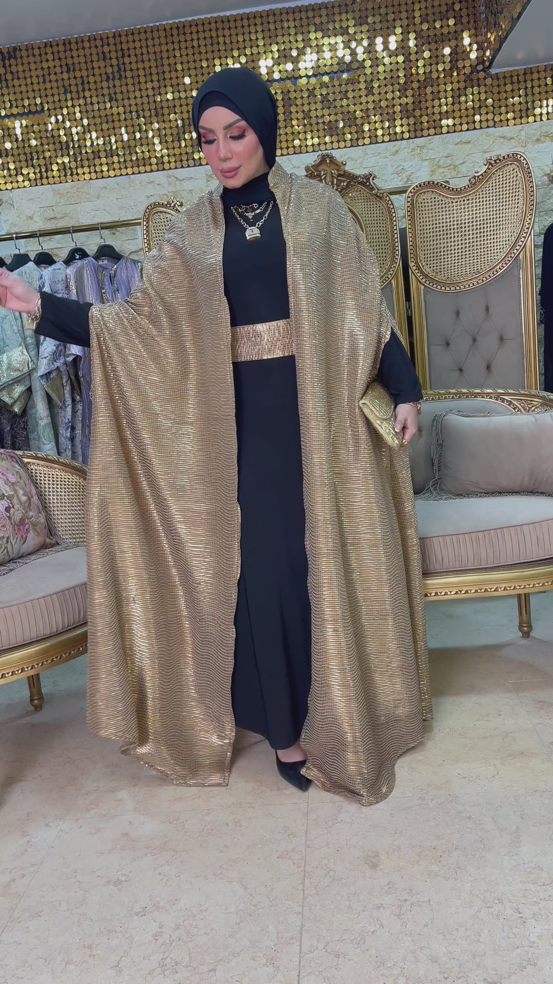 قفطان سواريه من خامة كريستال شايني + حزام لون القفطان، بدون بيزك , فري سايز يناسب ٧٠ك إلى ١٢٠ك