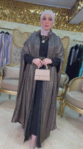 قفطان سواريه من خامة كريستال شايني + حزام لون القفطان، بدون بيزك , فري سايز يناسب ٧٠ك إلى ١٢٠ك