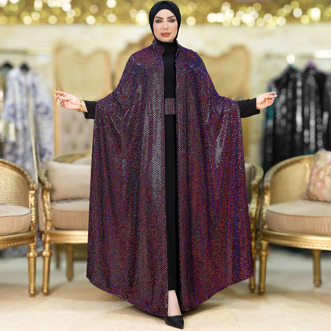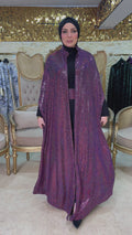 قفطان سواريه من خامة كريستال شايني + حزام لون القفطان، بدون بيزك , فري سايز يناسب ٧٠ك إلى ١٢٠ك