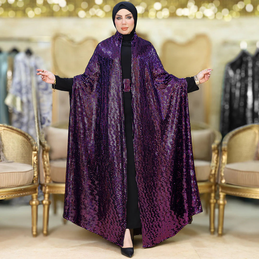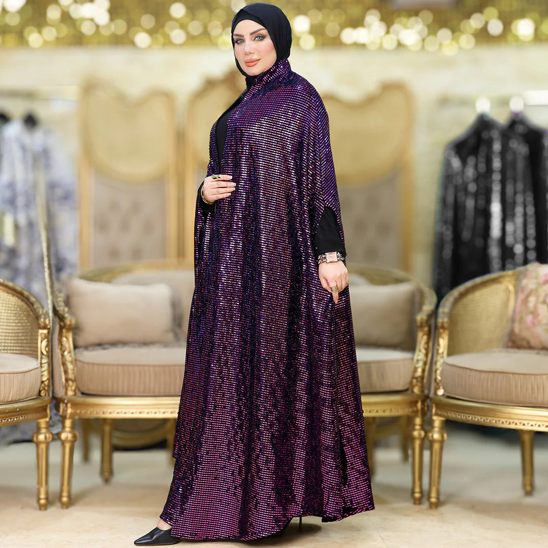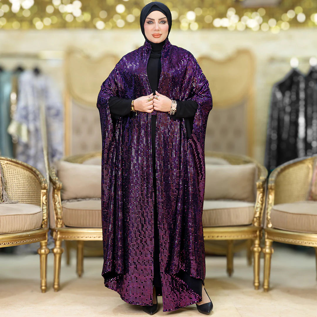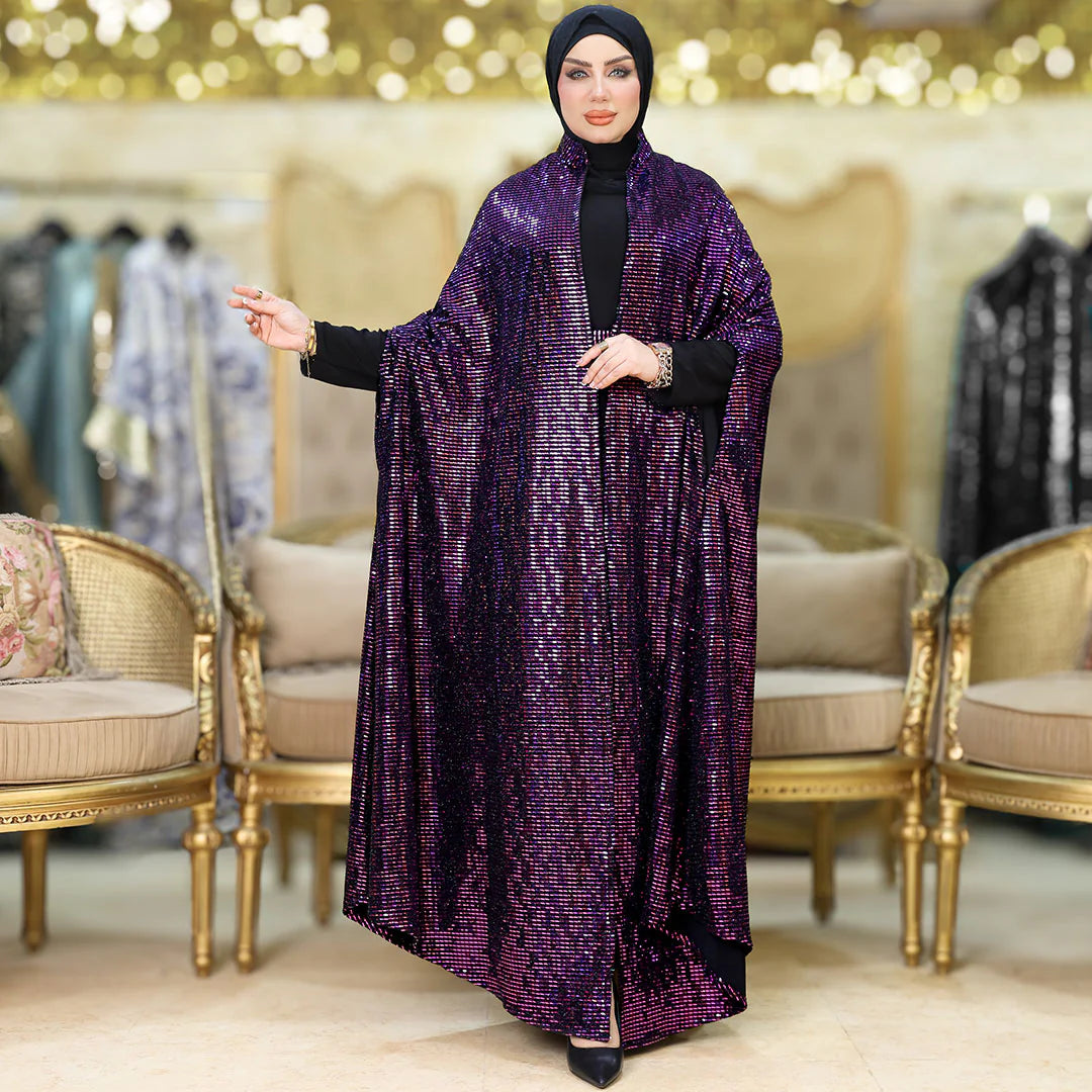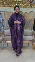 قفطان سواريه من خامة كريستال شايني + حزام لون القفطان، بدون بيزك , فري سايز يناسب ٧٠ك إلى ١٢٠ك