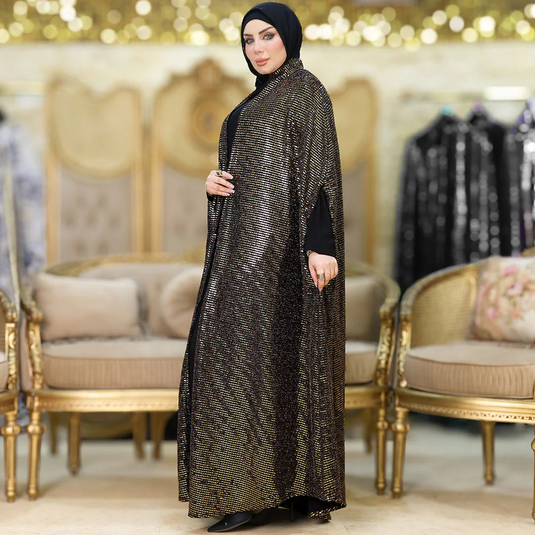 قفطان سواريه من خامة كريستال شايني + حزام لون القفطان، بدون بيزك , فري سايز يناسب ٧٠ك إلى ١٢٠ك