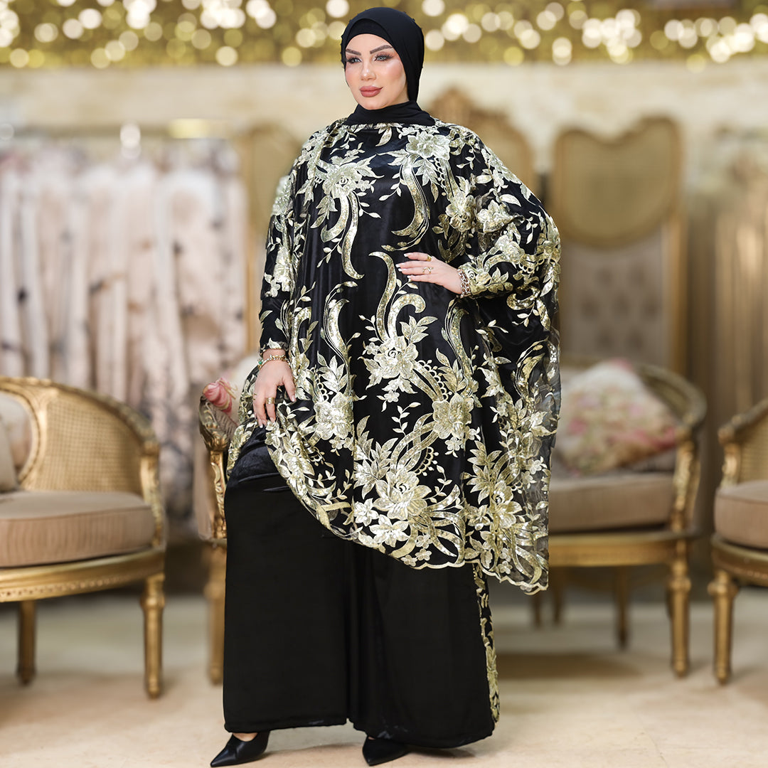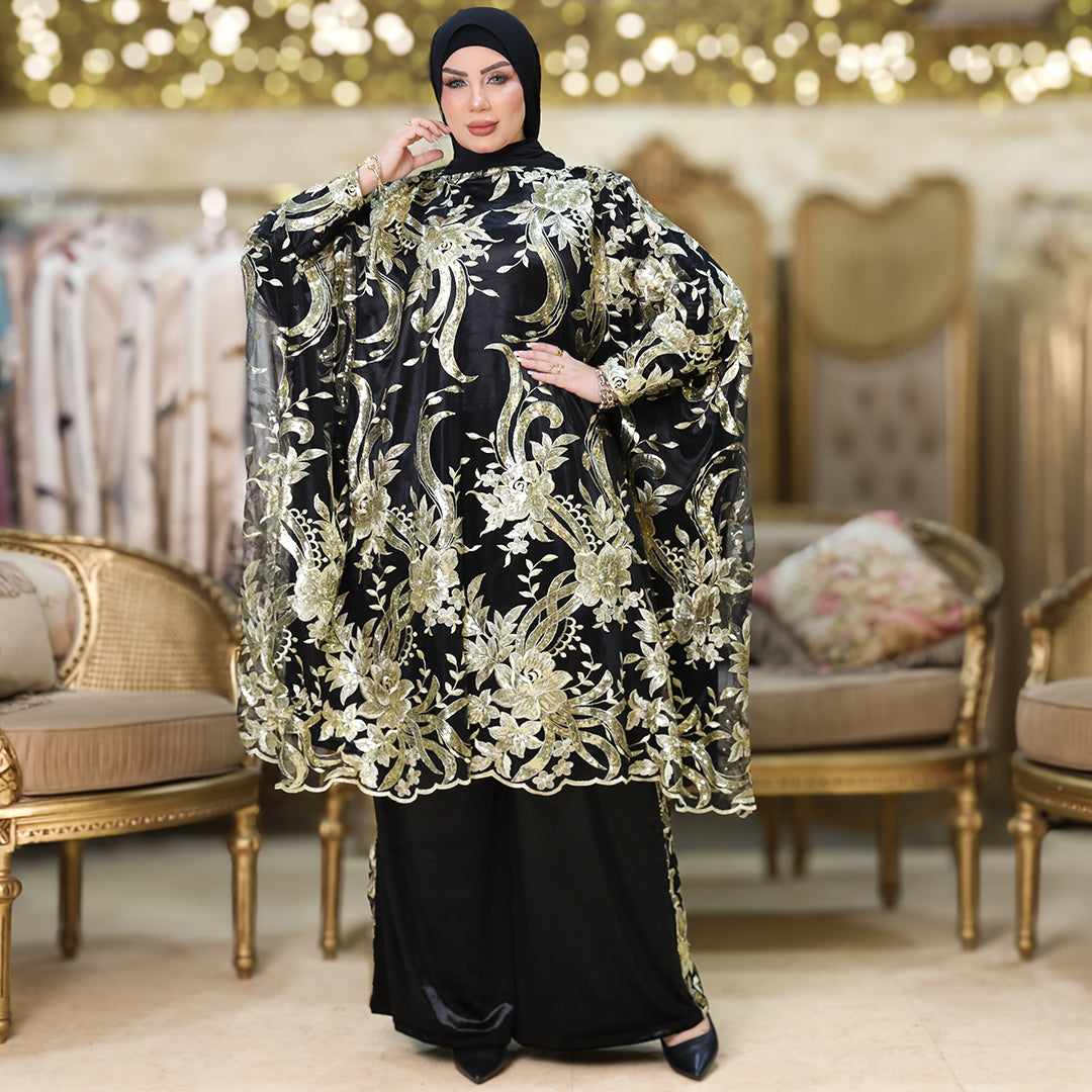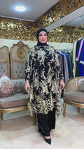 البنطلون شمواه بشريط تطريز أورجانزا من الجانب.