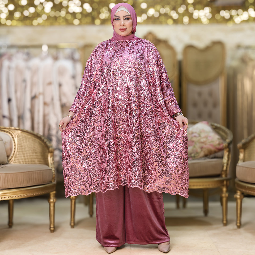 سوت قطعتين سواريه من خامة الأورجانزا ببطانة شمواه.