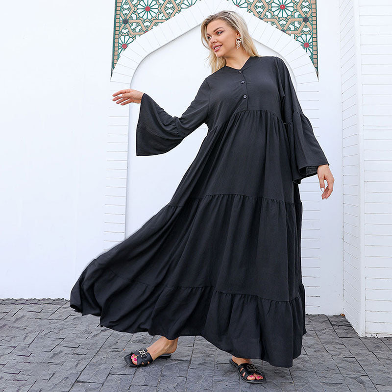 فستان كاجوال من قماش الكريب الخفيف فري سايز يناسب ٧٠ك إلى ١٠٠ك.