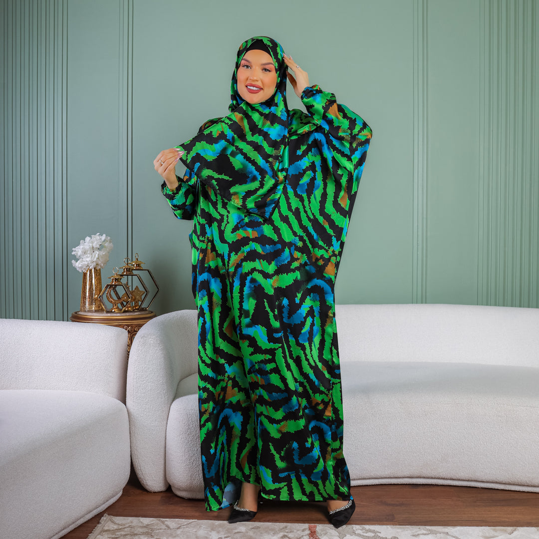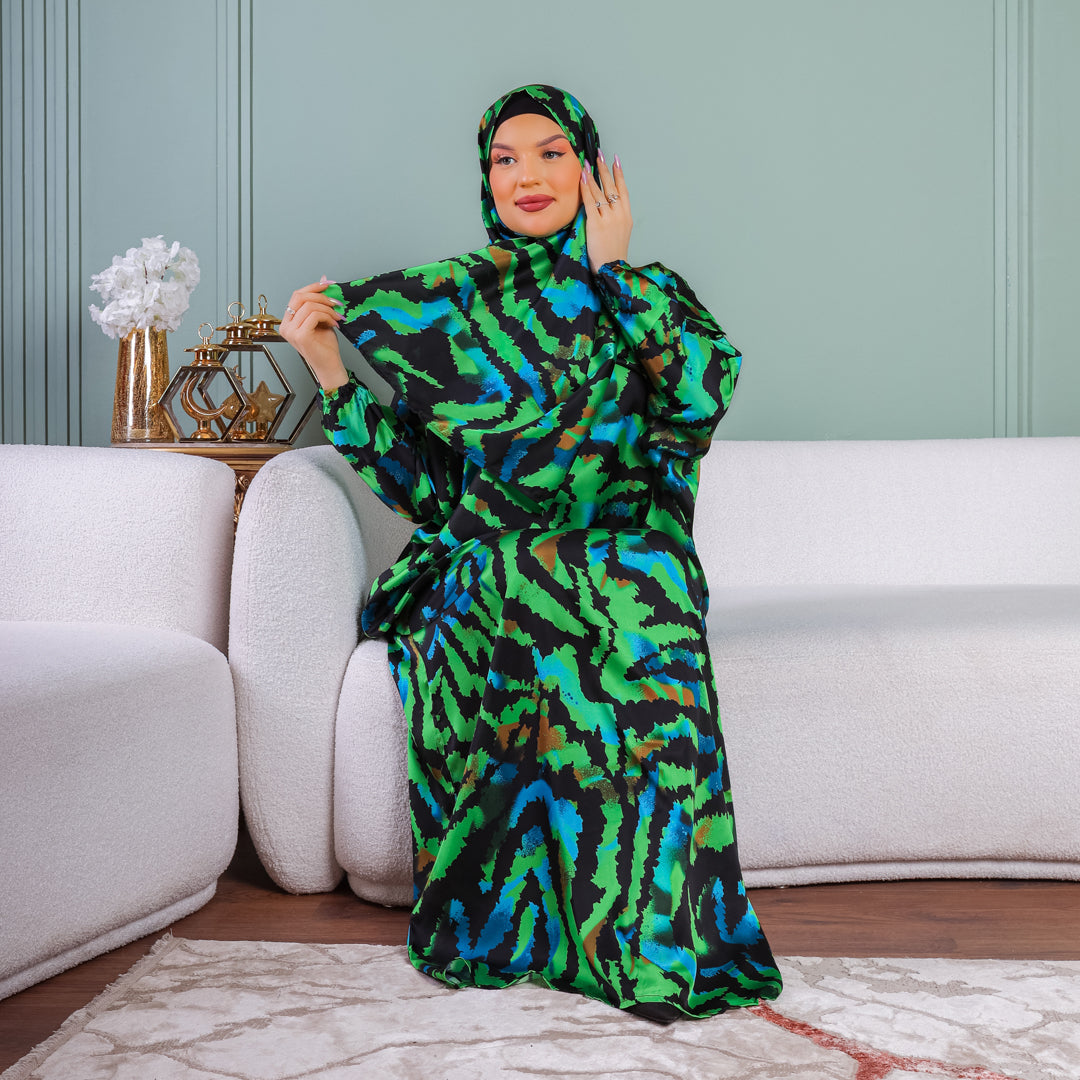 ثوب صلاة (إسدال) حرير ستان عملي مطبوع من تصميماتنا الخاصة