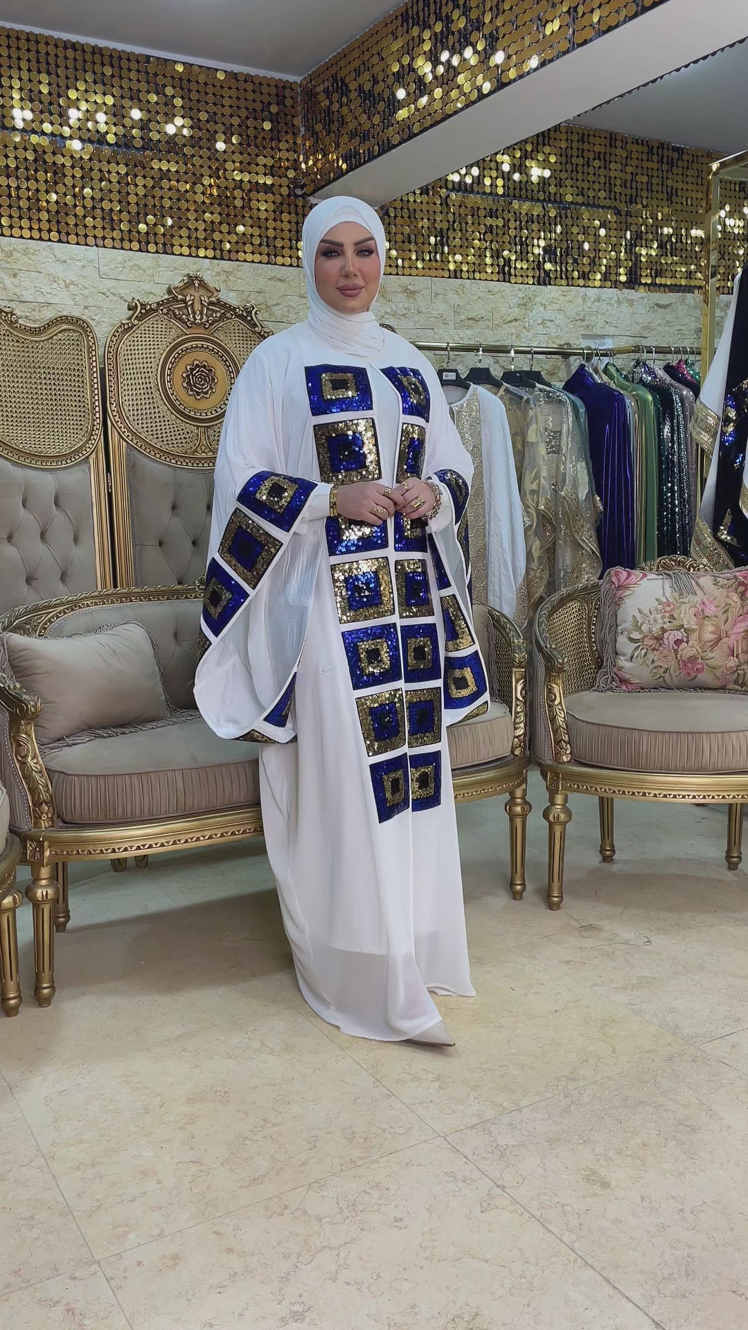 قفطان شيفون شفاف بدون بطانة بحريني مطرز تطريز بشكل عصري جذاب فري سايز يناسب ٧٠ك إلى ١٣٠ك و الطول من الكتف ١٥٥سم