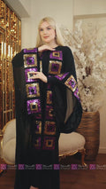 قفطان شيفون شفاف بدون بطانة بحريني مطرز تطريز بشكل عصري جذاب فري سايز يناسب ٧٠ك إلى ١٣٠ك و الطول من الكتف ١٥٥سم